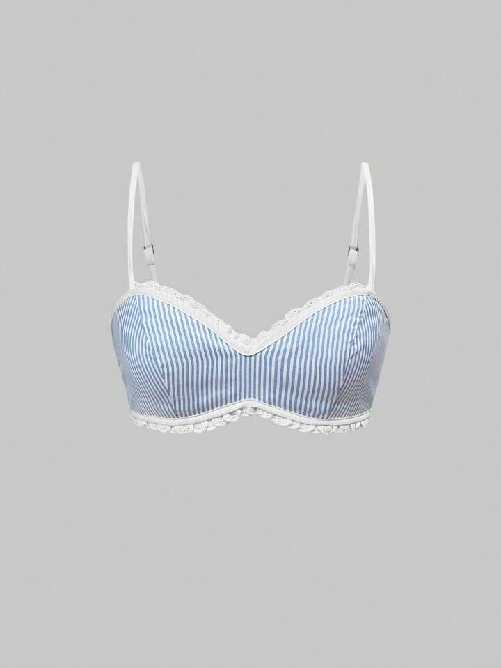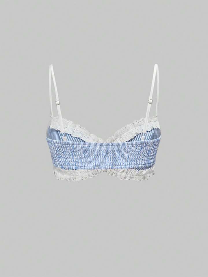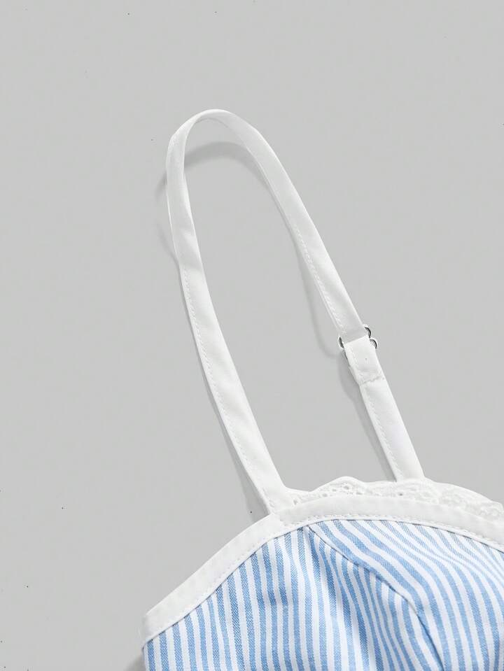 Ensemble de bikini avec un débardeur à rayures et une garniture en dentelle pour les jeunes filles