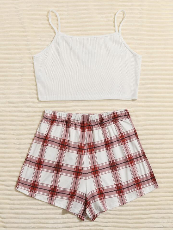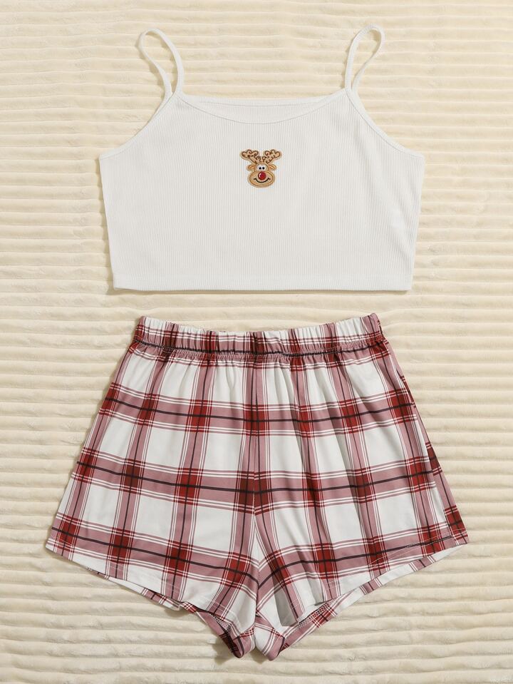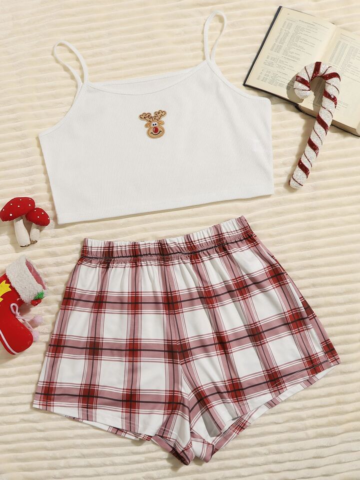 Ensemble de pyjama à carreaux avec imprimé cerf de Noël