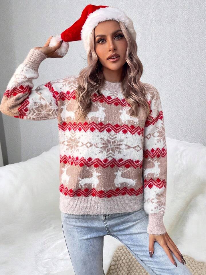 Pull col rond décontracté à motif de Noël, automne/hiver