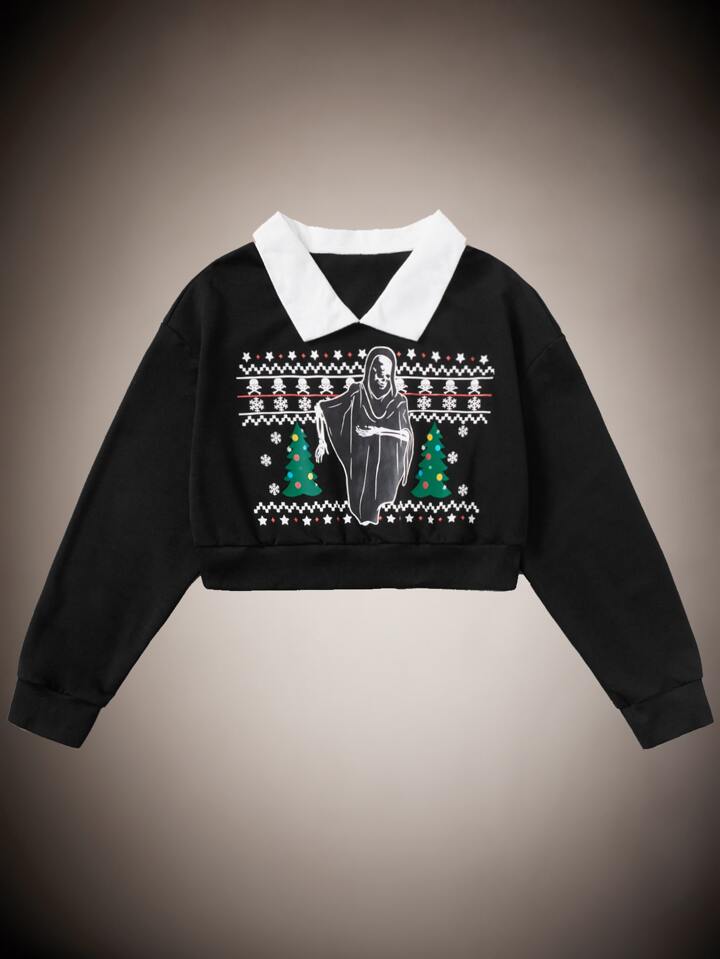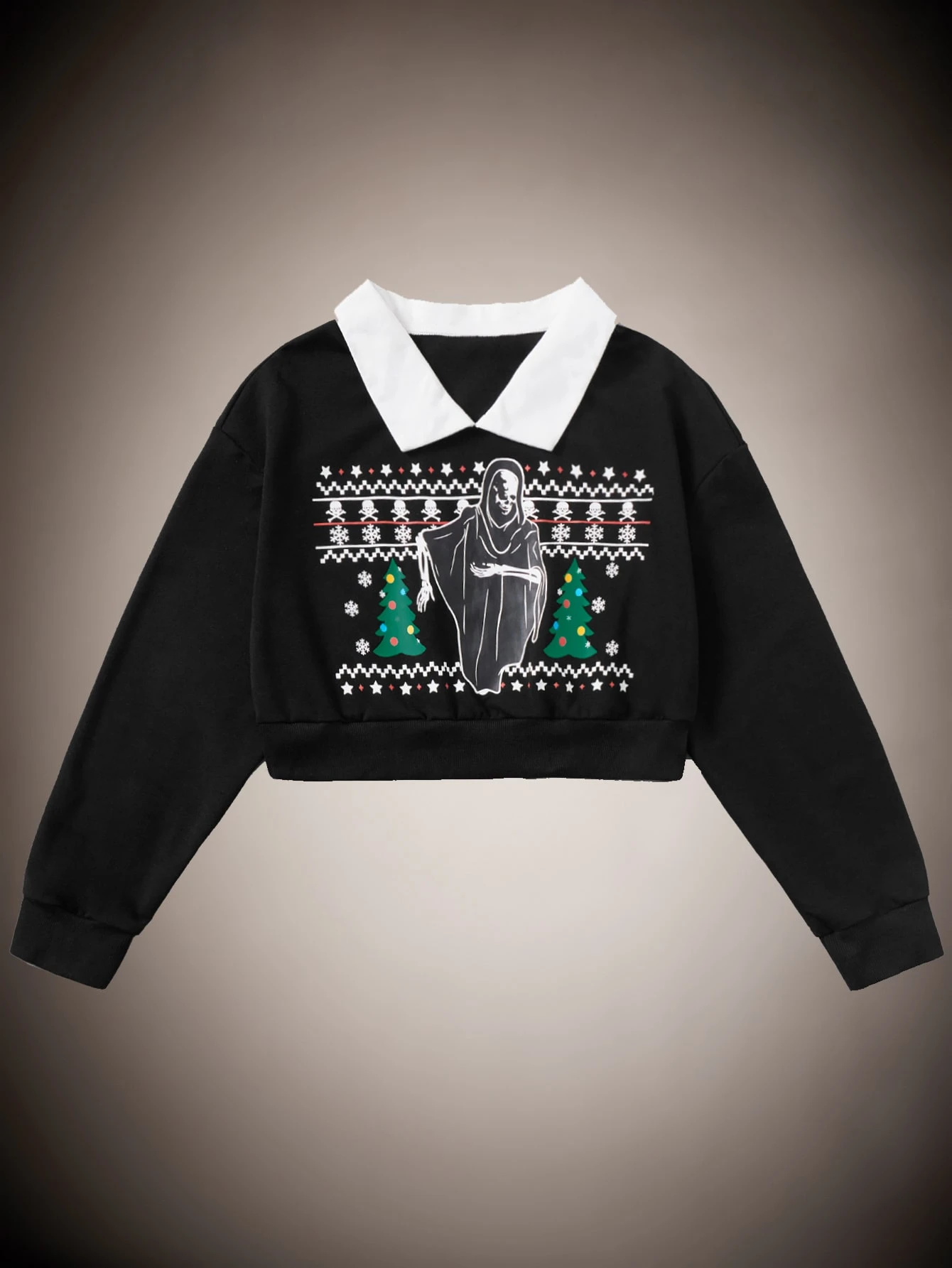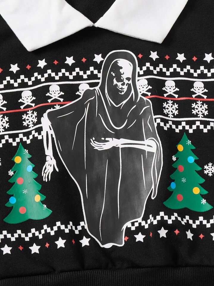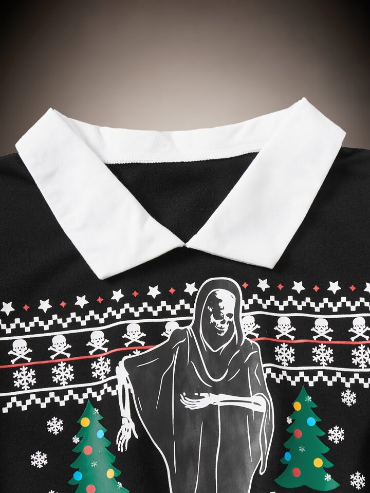 Sweat-shirt Noël à motif tête de mort à col contrastant