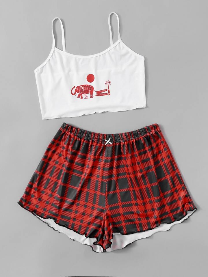 Cmptrules Ensemble de pyjama à motif éléphant graphique à carreaux