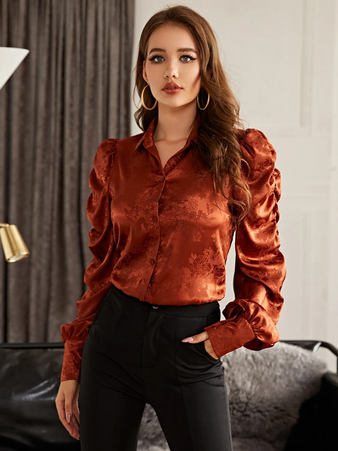 Chemisier en satin avec manches froncées