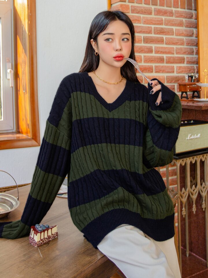 Pull Tricoté À Col En Blocs De Couleur Avec Épaules Tombantes