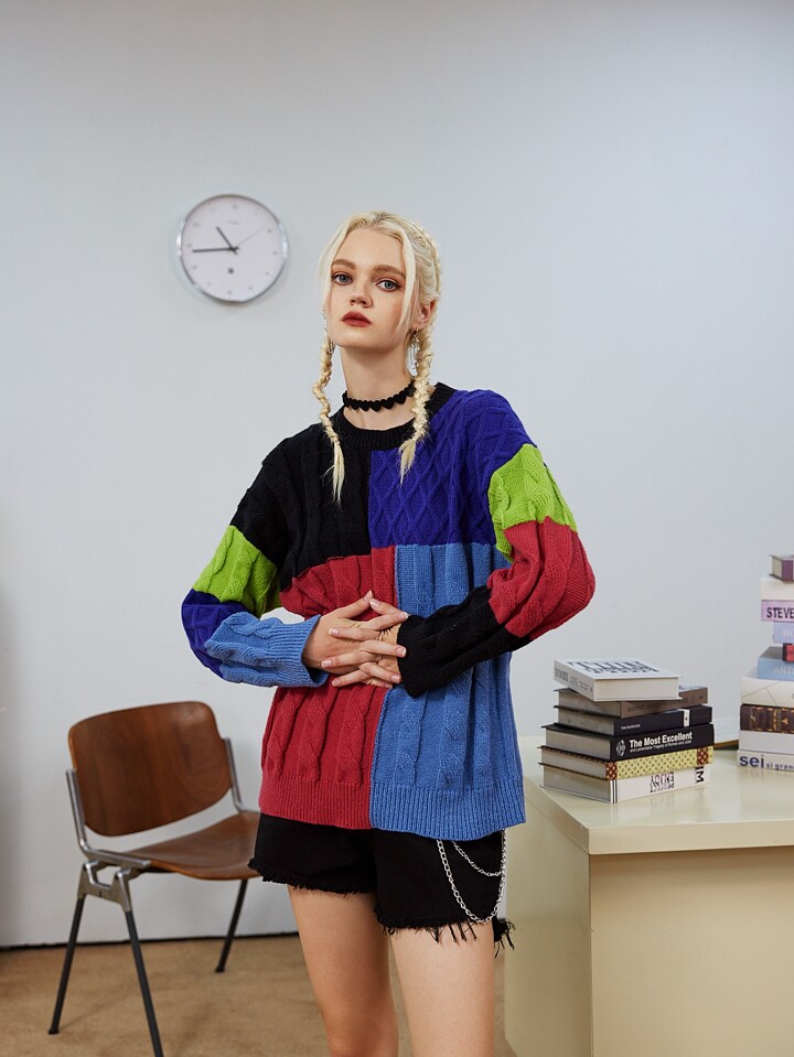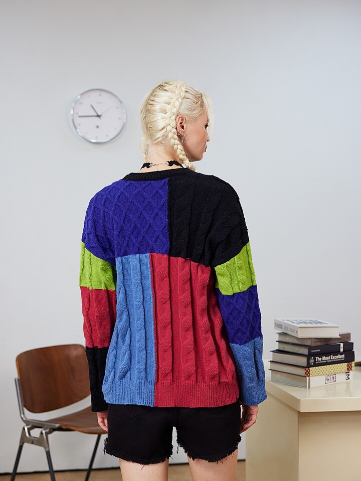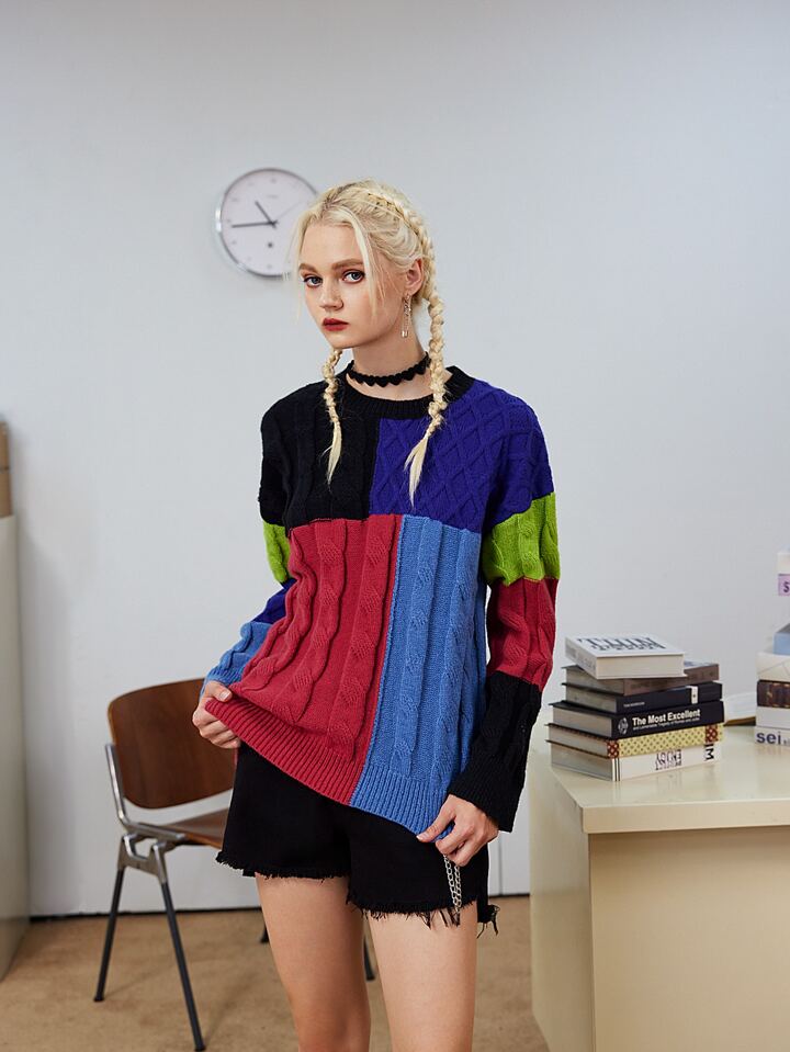 Pull à blocs de couleurs en tricot torsadé