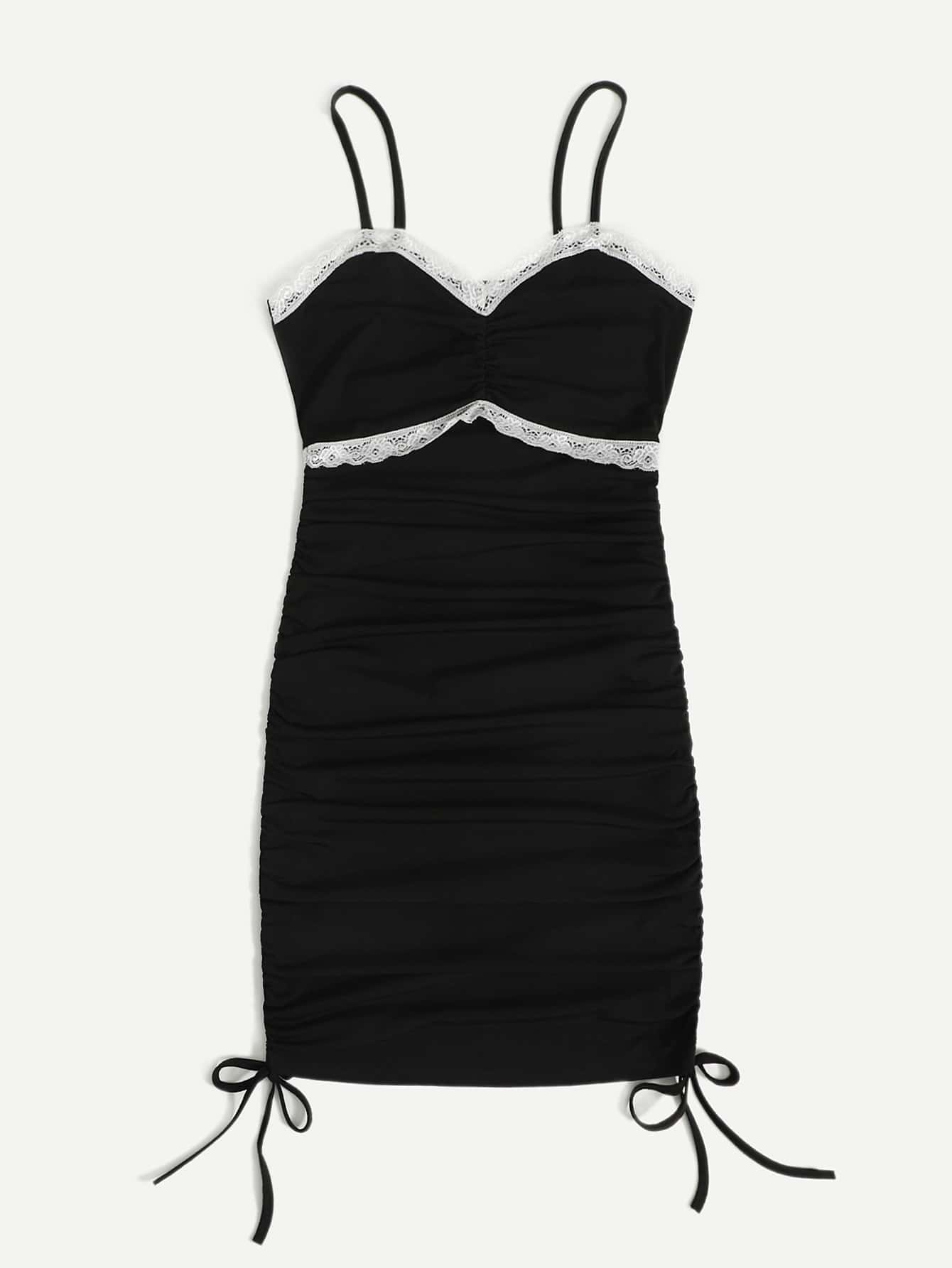 Robe à fines brides moulante à blocs de couleurs avec dentelle