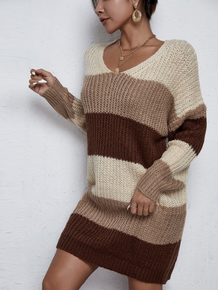 Robe à blocs de couleurs côtelée