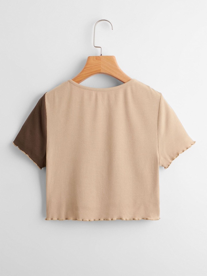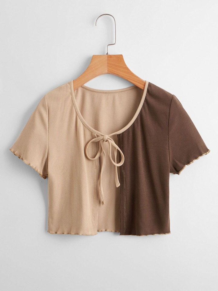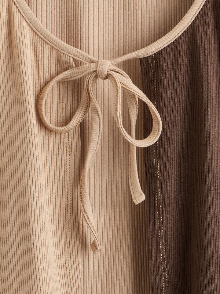Top bicolore côtelé avec nœud