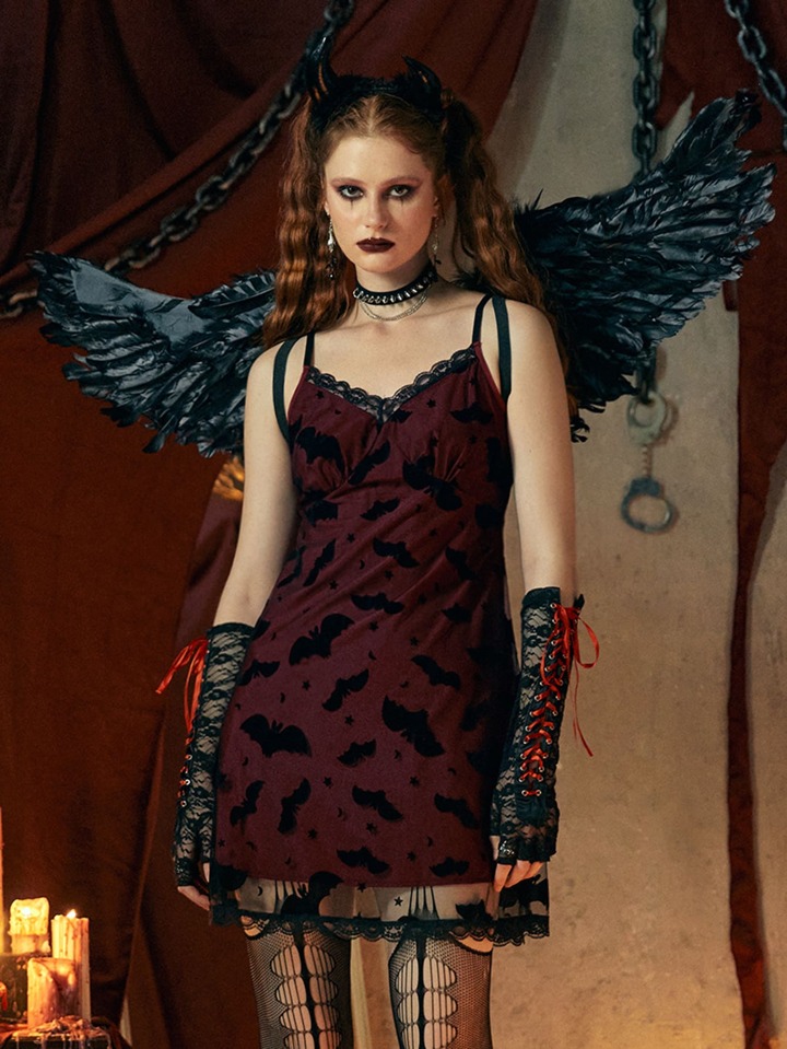 Robe à fines brides contrastant chauve souris en tulle sans manchettes