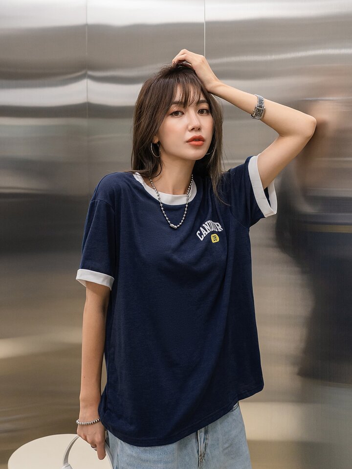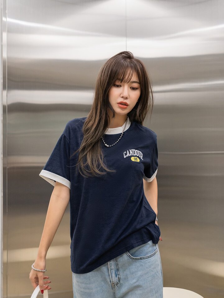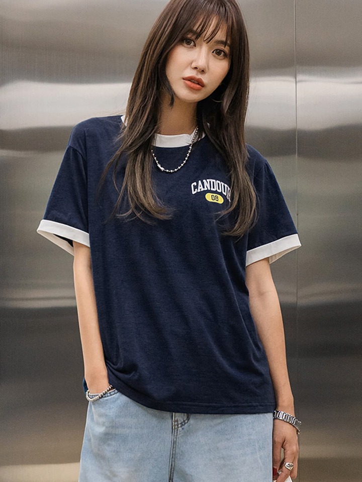 T-shirt Graphique À Lettre Contrastante Et Reliure