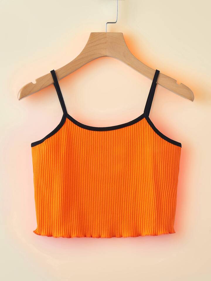Top à fines brides court à liseré contrastant à ourlet ondulé côtelé