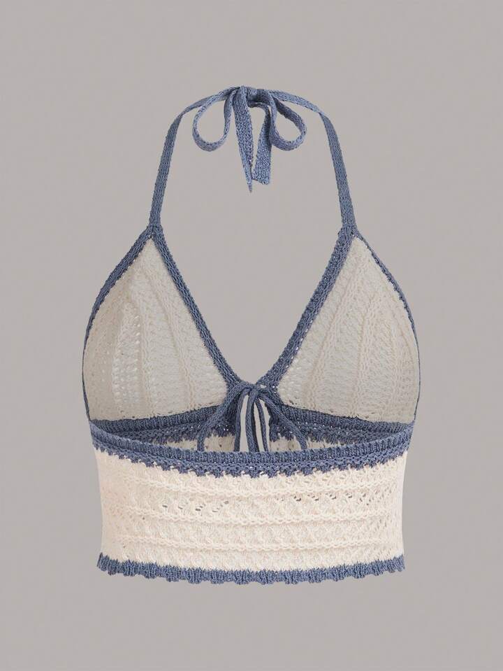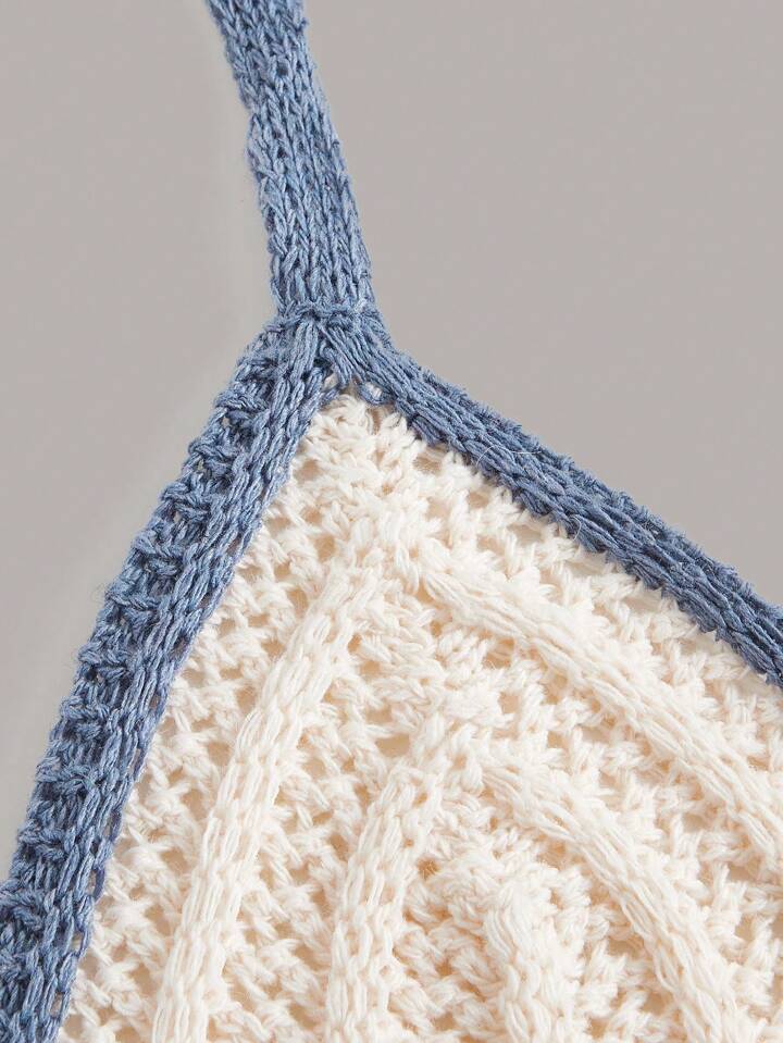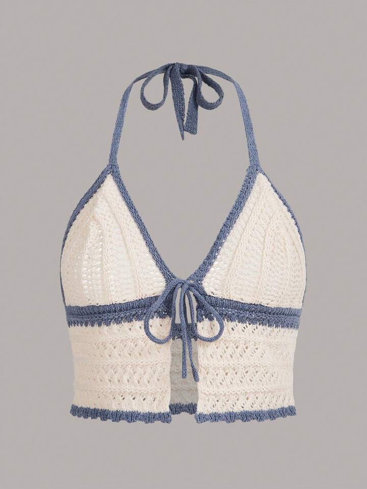 Top en tricot à liseré contrastant à nœud ras-du-cou