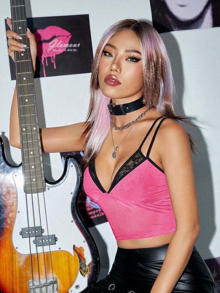 Top À Fines Brides Court En Dentelle