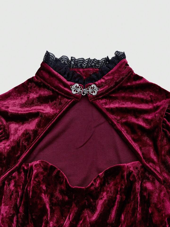 Robe En Dentelle Découpé Ourlet En Dentelle Manches Évasées En Velours Sans Corset