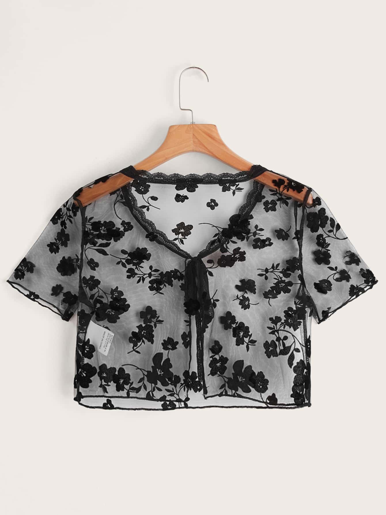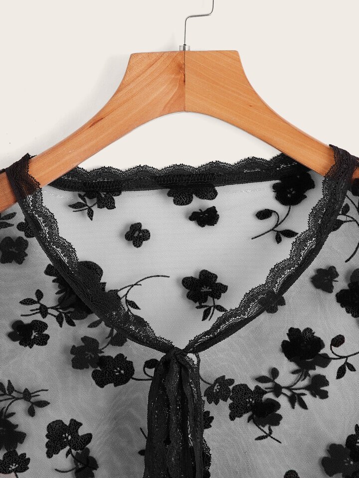 Top court en dentelle en tulle à nœud