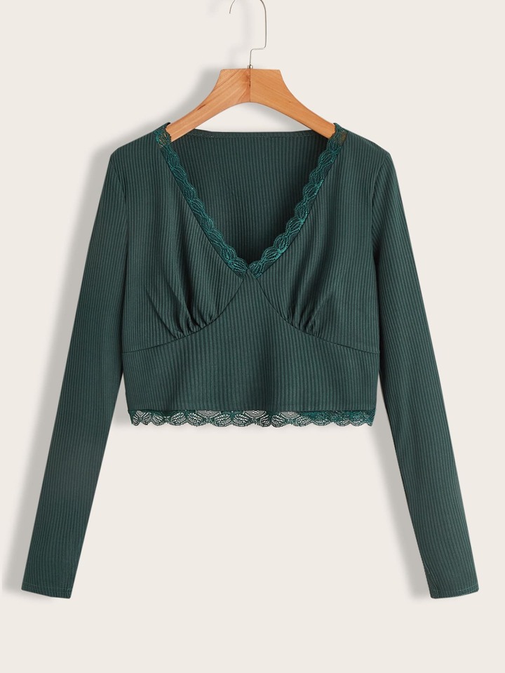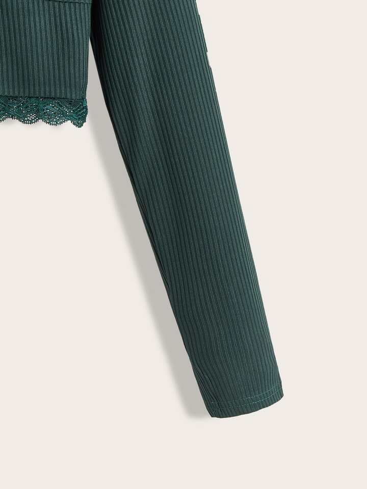 T-shirt en dentelle côtelé