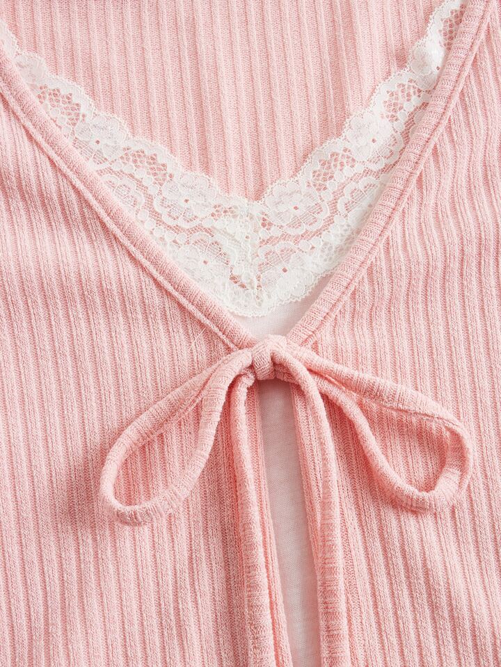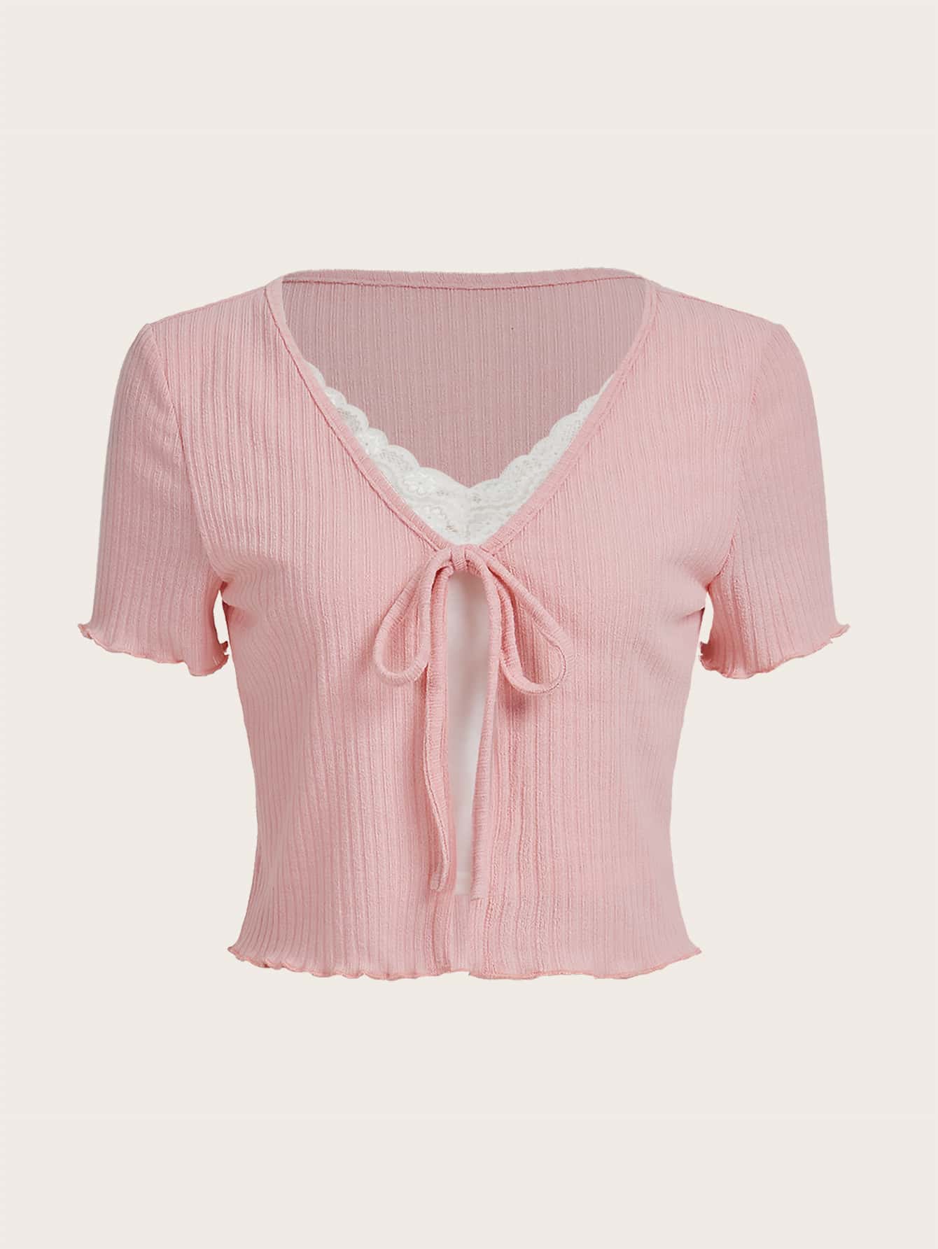 Top en dentelle à nœud à ourlet ondulé