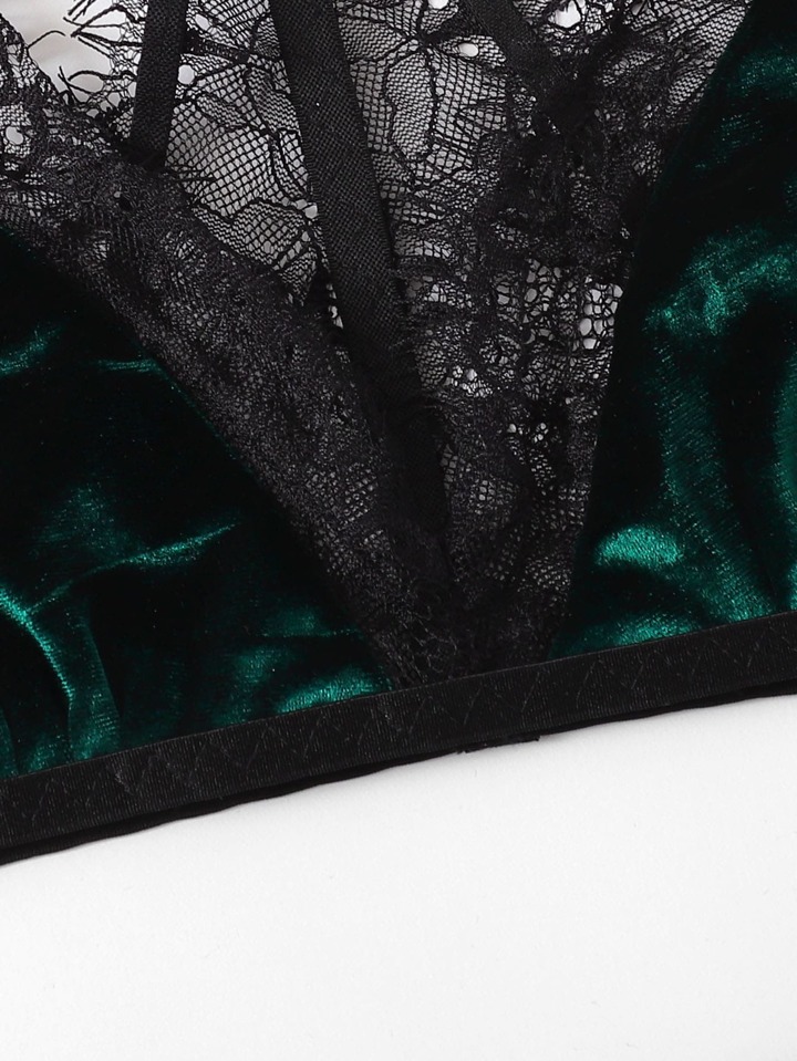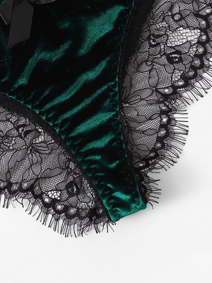 Ensemble de lingerie en velours avec dentelle contrastée