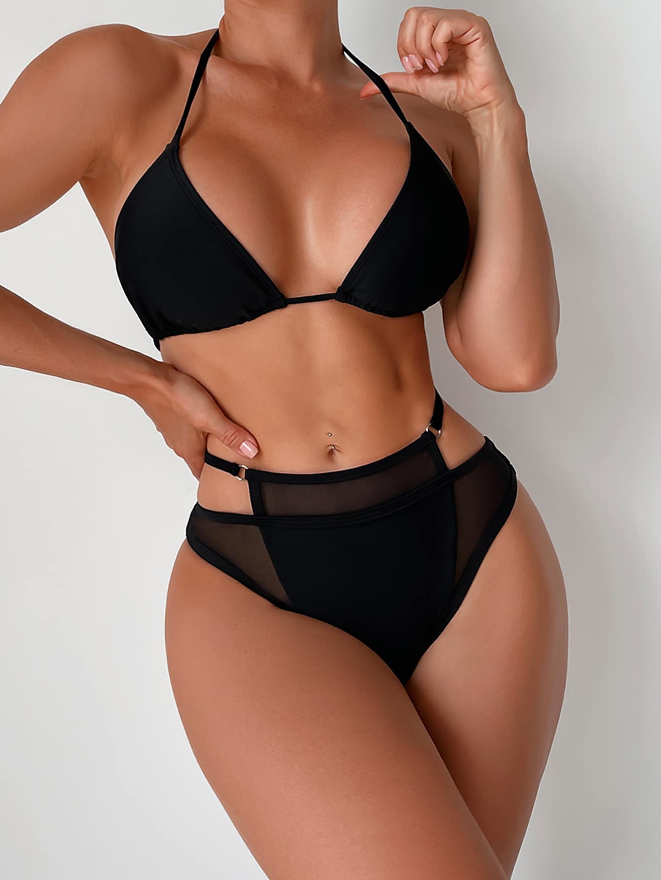 Ensemble bikini d'été à bretelles en mesh contrasté et triangle pour la plage