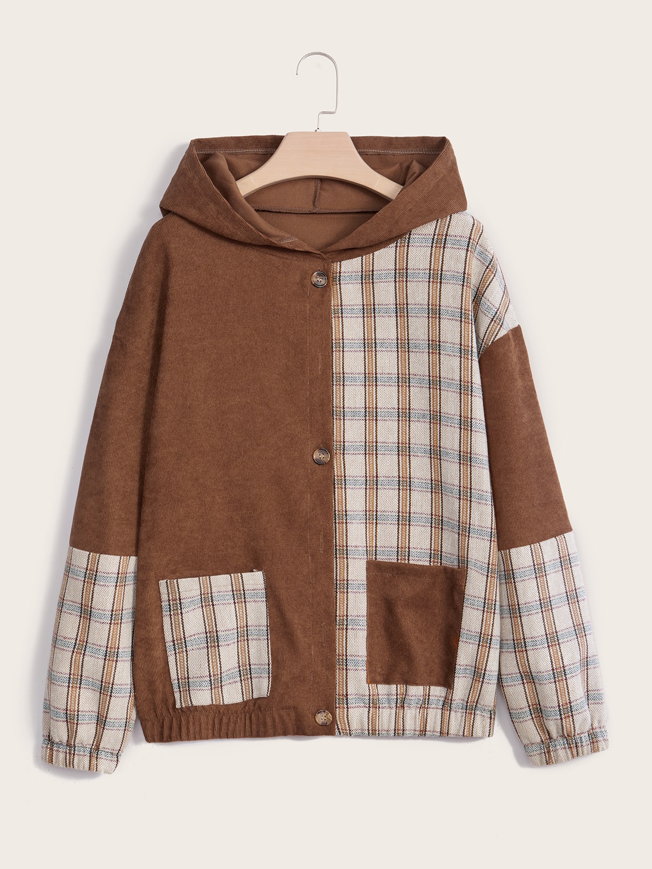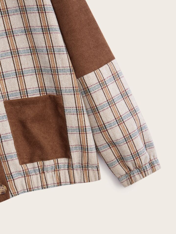 Veste à carreaux à poche en velours côtelé