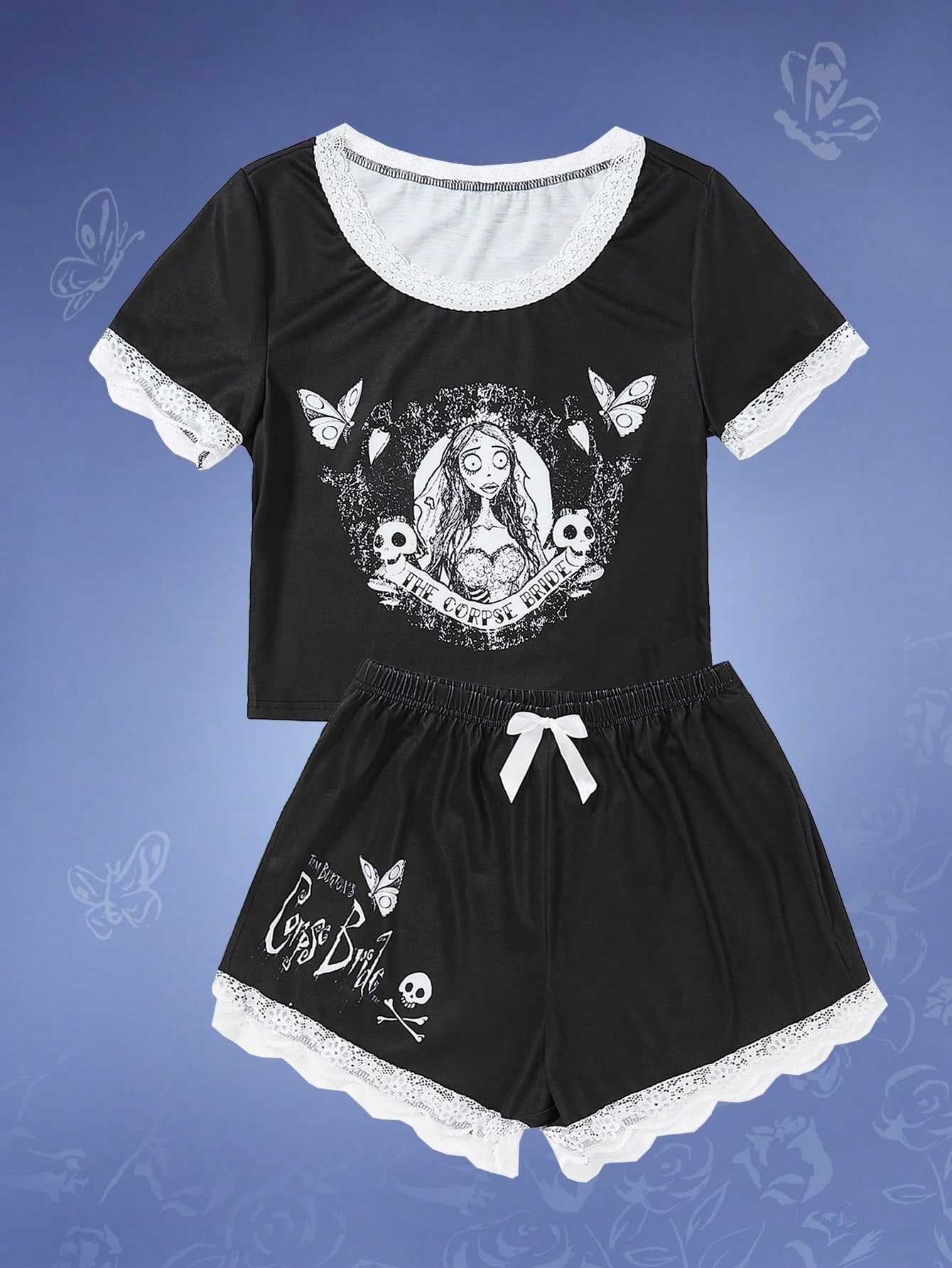 Corpse Bride | ROMWE Ensemble De Pyjama Papillon & Figure En Dentelle