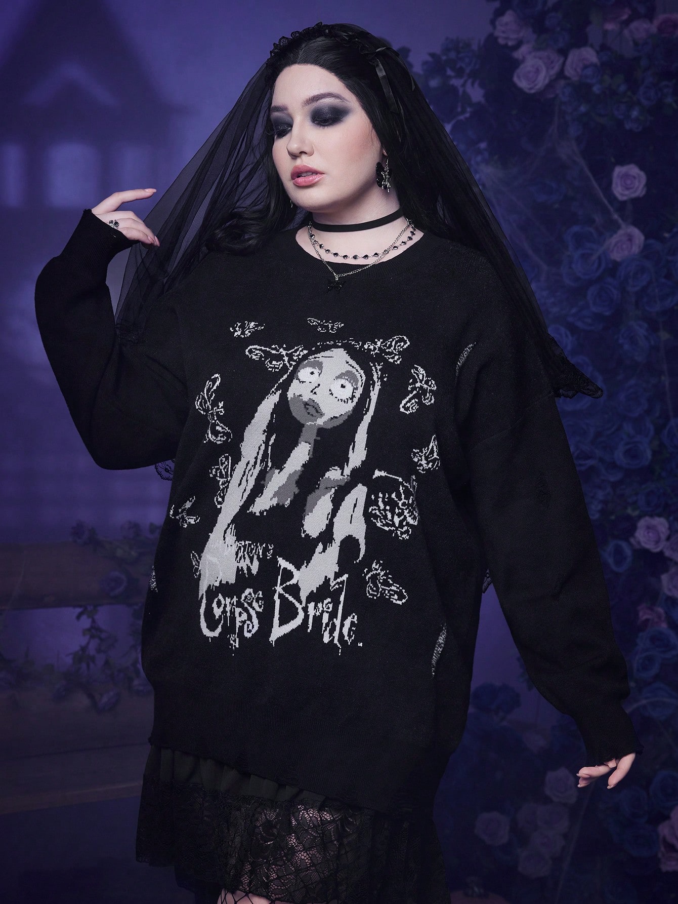 Corpse Bride | ROMWE Plus Pull Motif Figure Épaule tombante