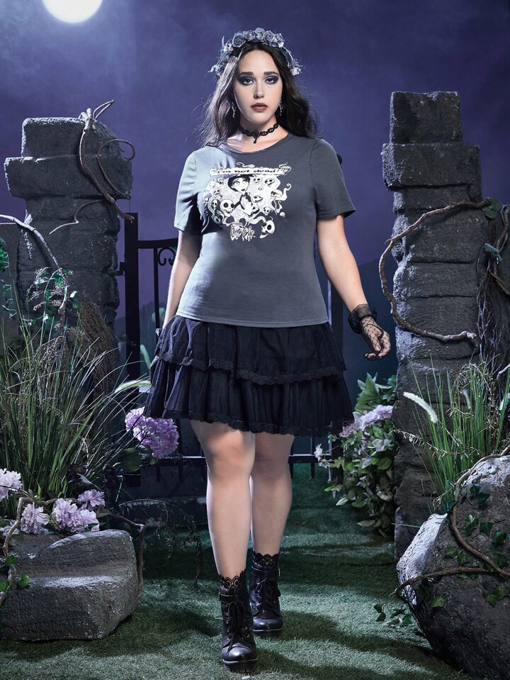Corpse Bride | ROMWE T-shirt Graphique Skull & Letter Pour Tailles Plus