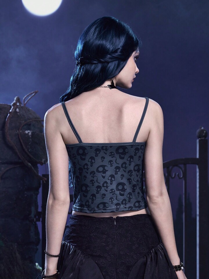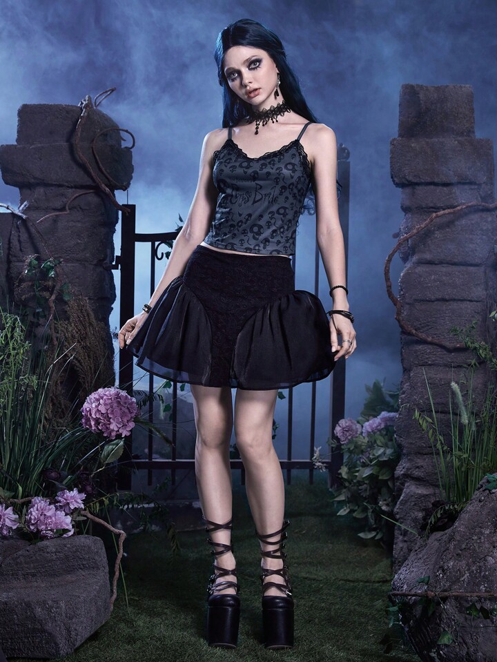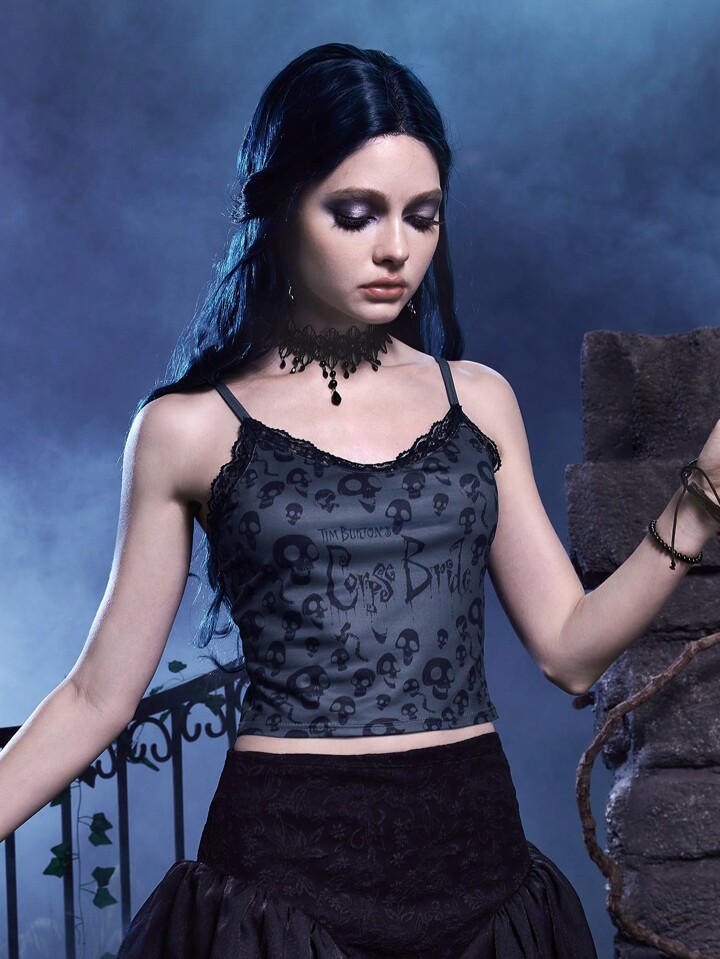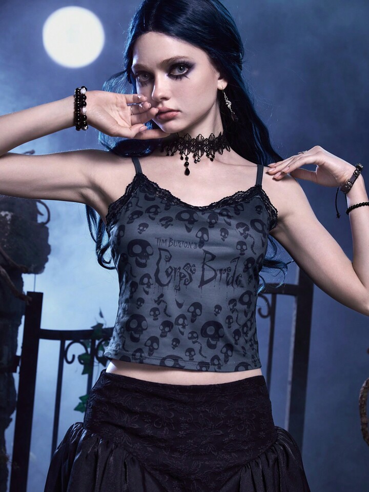 Corpse Bride | ROMWE Top À Fines Brides Imprimé Tête De Mort En Dentelle