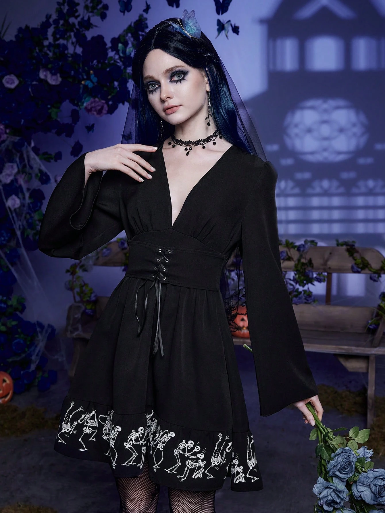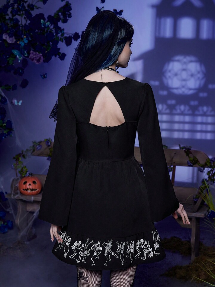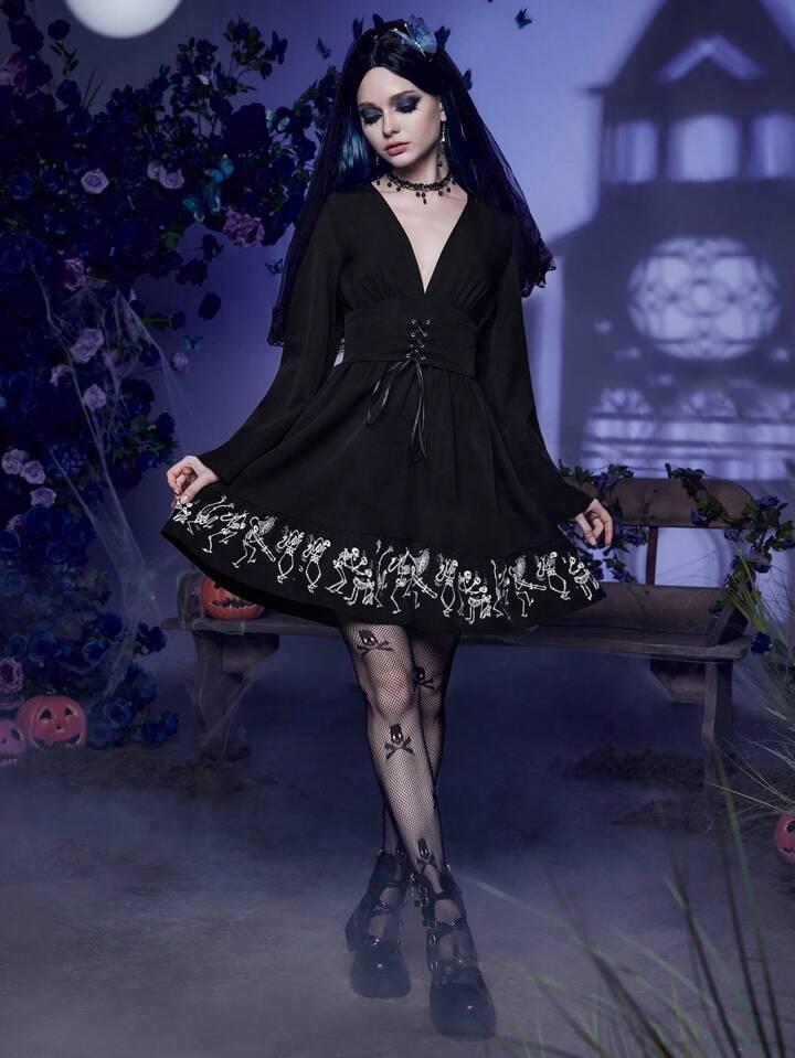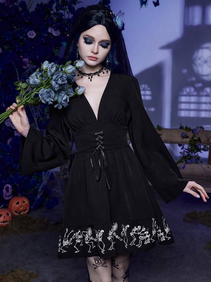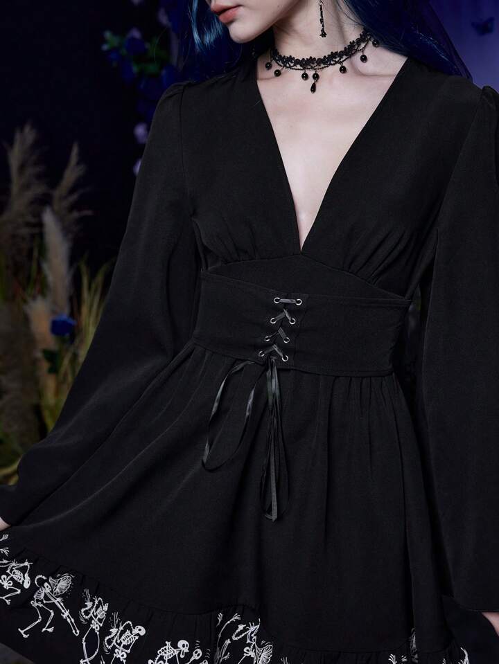 Corpse Bride | ROMWE Robe Imprimé Tête De Mort À Lacets À Volants
