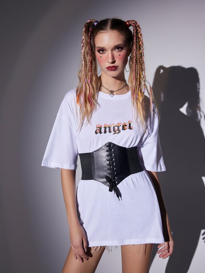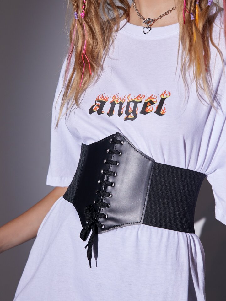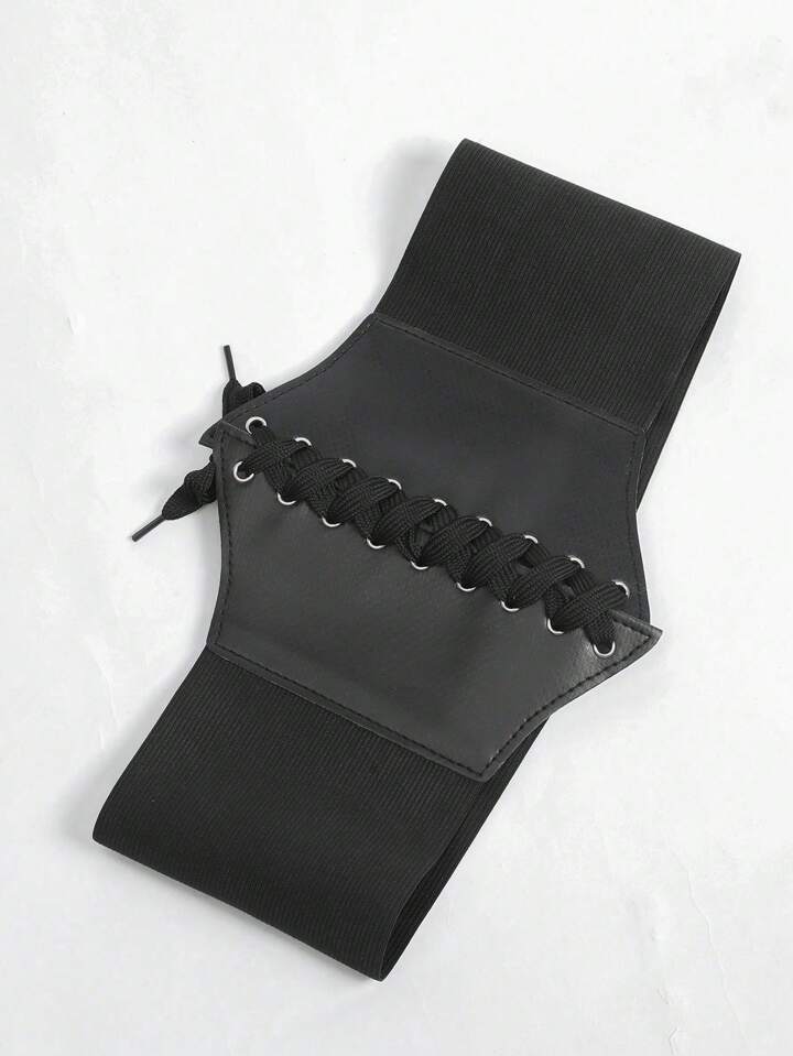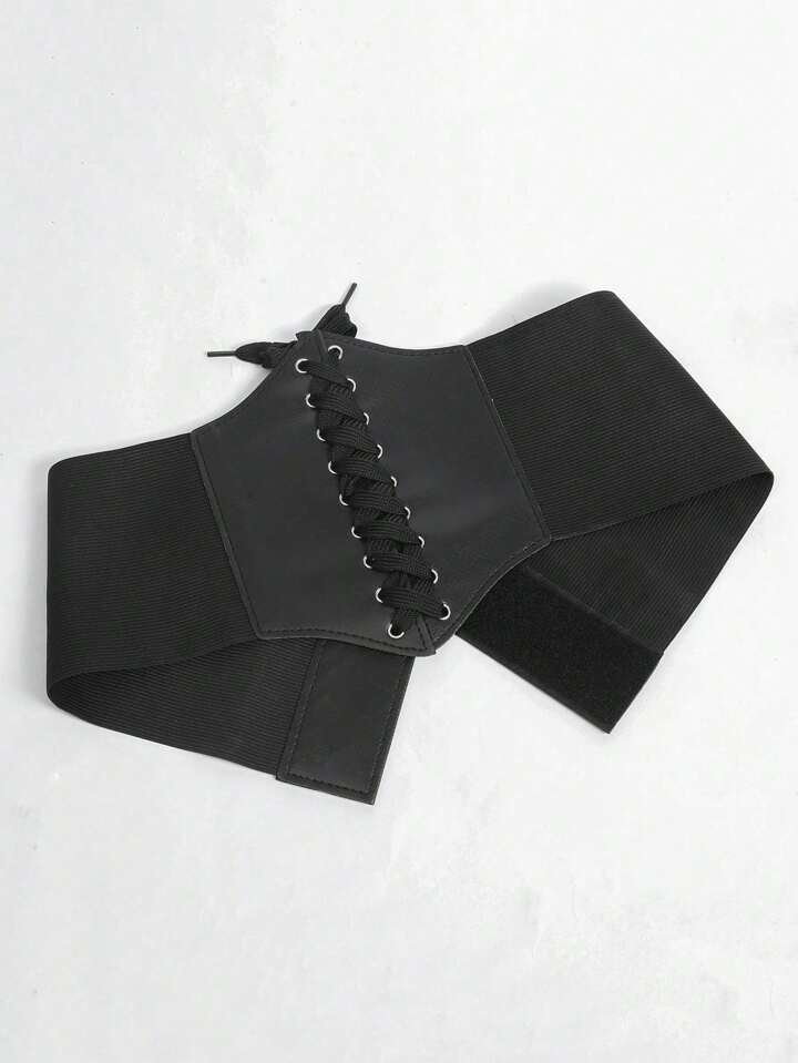 1 pièce Ceinture corset à lacets noire pour femmes, pour la décoration de robe, entraîneur de taille pour Halloween, accessoires pour dames, pour porter à l'occidentale, style cowboy/cowgirl, style campagnard, vintage. Ceinture corset noire pour robe, entraîneur de taille pour le galbage de la taille et le contrôle du ventre, gaine sculptante pour la décoration de robe, entraîneur de taille pour le galbage de la taille et le contrôle du ventre, accessoires d'Halloween, costumes d'Halloween, tenues d'automne