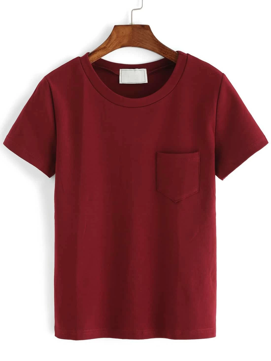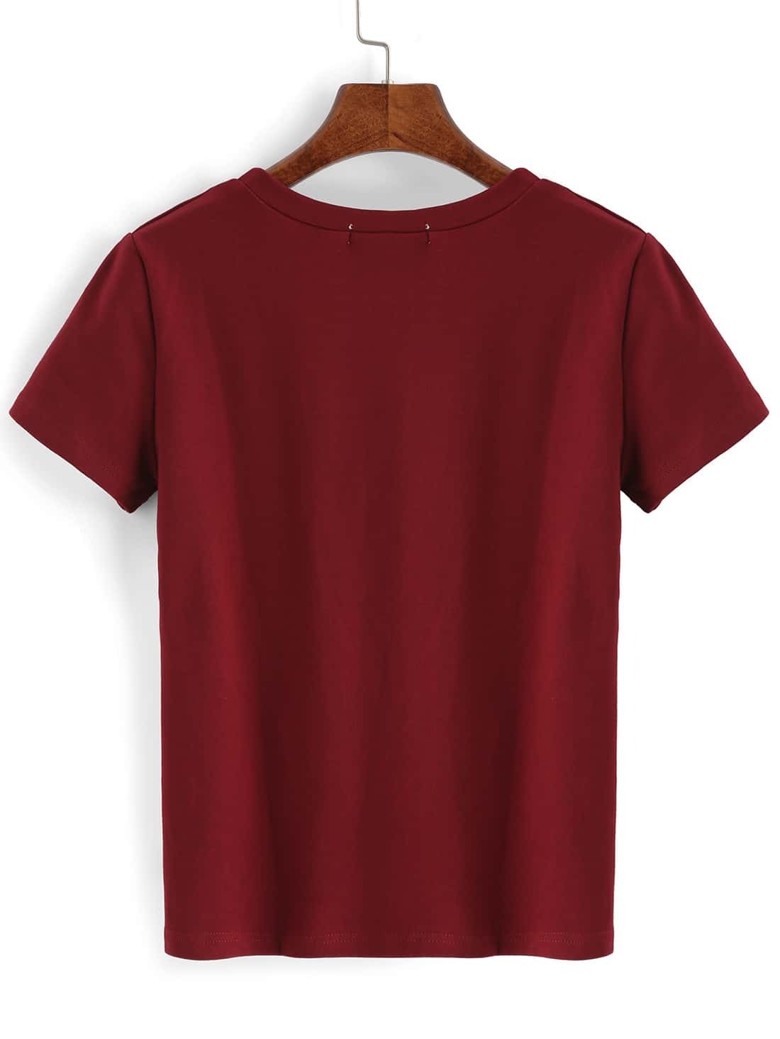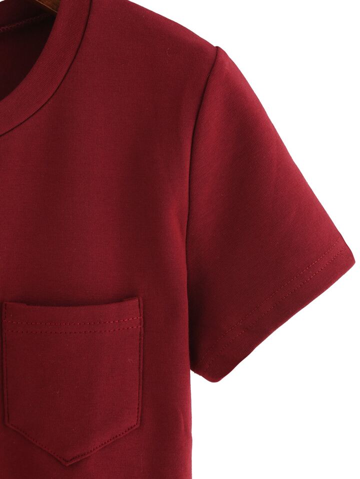 T-shrit col onde manche courte avec poche -rouge bordeaux