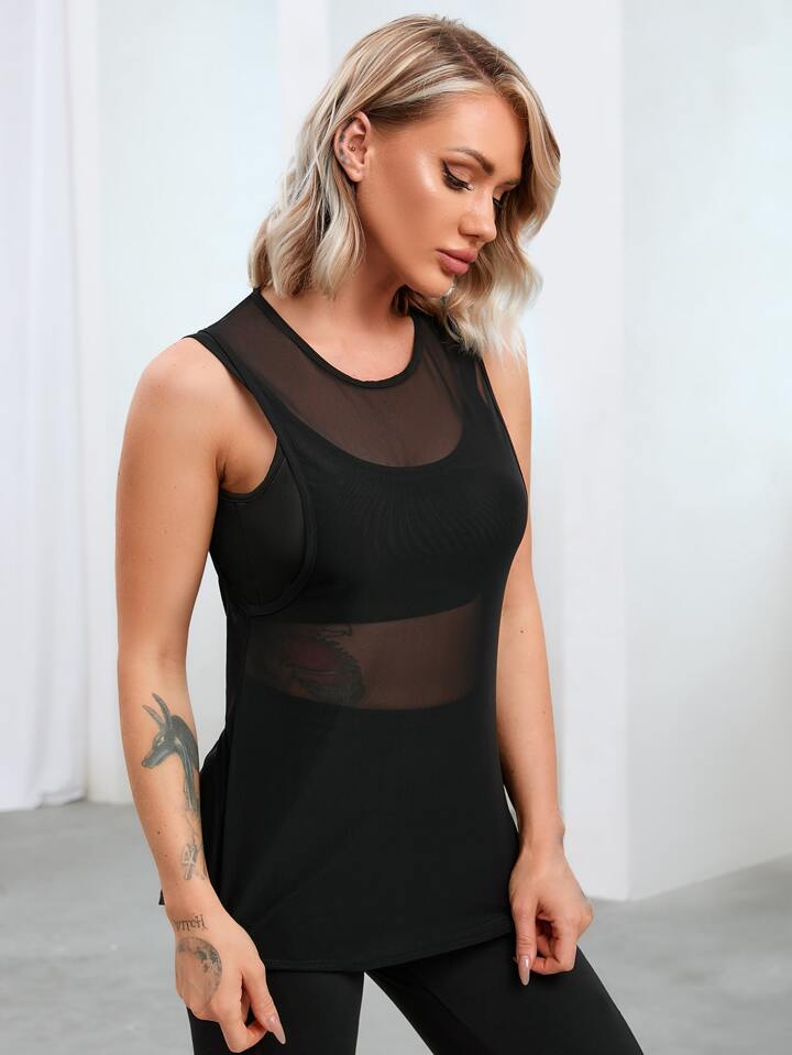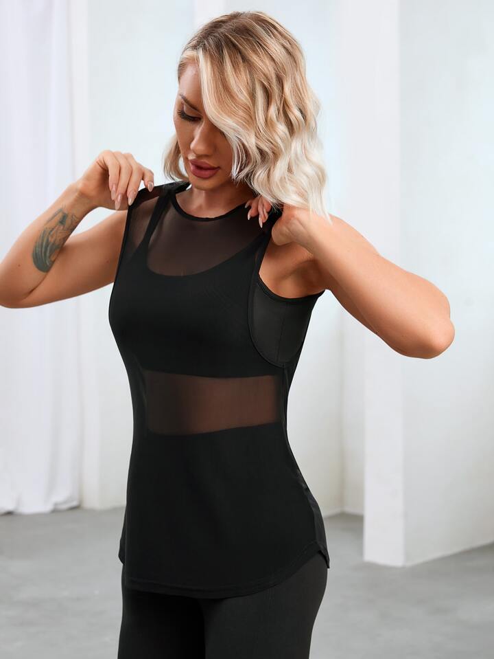 Débardeur de sport dos-nu croisé transparent (sans soutien-gorge)