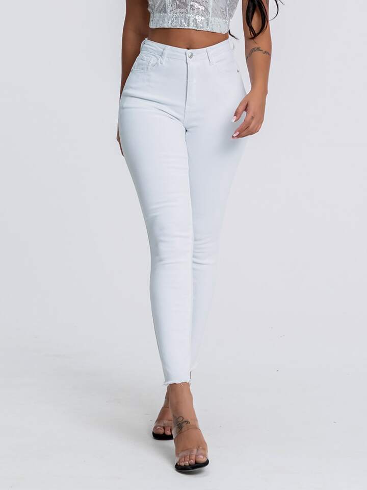 Jean skinny à ourlet effiloché
