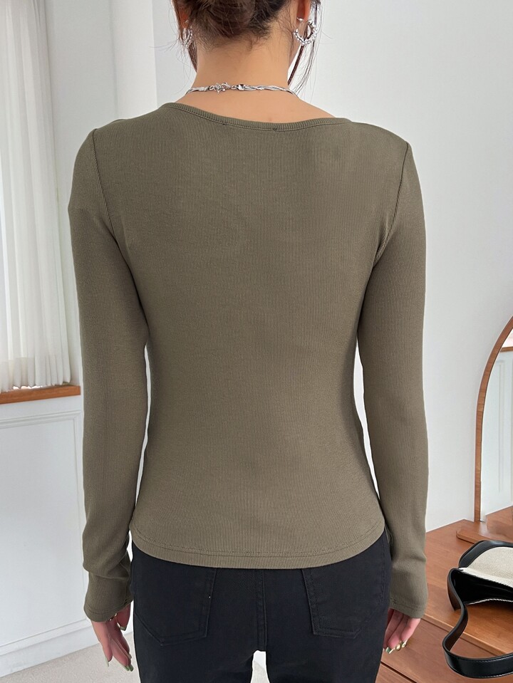 Top côtelé à découpes, Hauts de sortie, Vêtements d'automne Tops à manches longues pour femmes