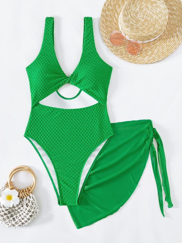 Maillot de bain une pièce découpé torsadé & Jupe de plage à nœud