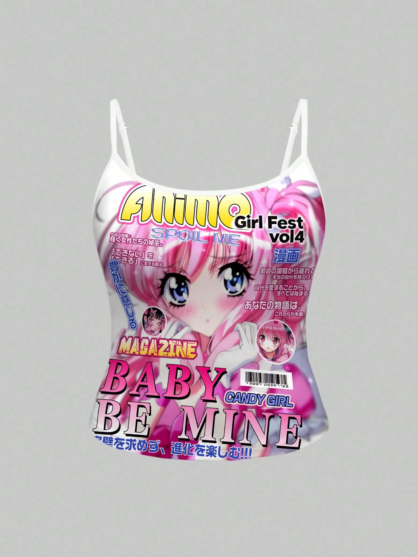Camisole de femme avec imprimé fille anime de dessin animé mignon rose en forme de cœur et bretelles