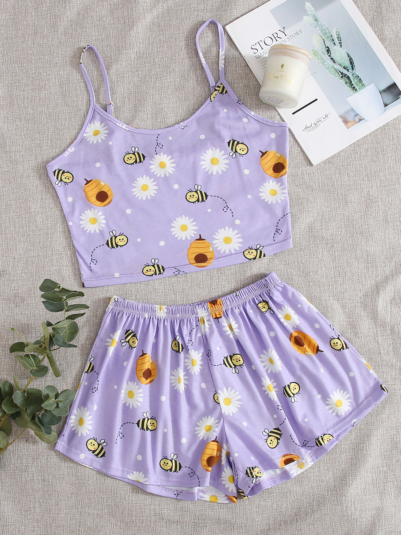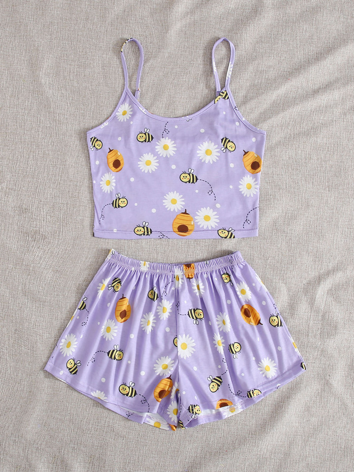 Ensemble de pyjama à fines brides à imprimé