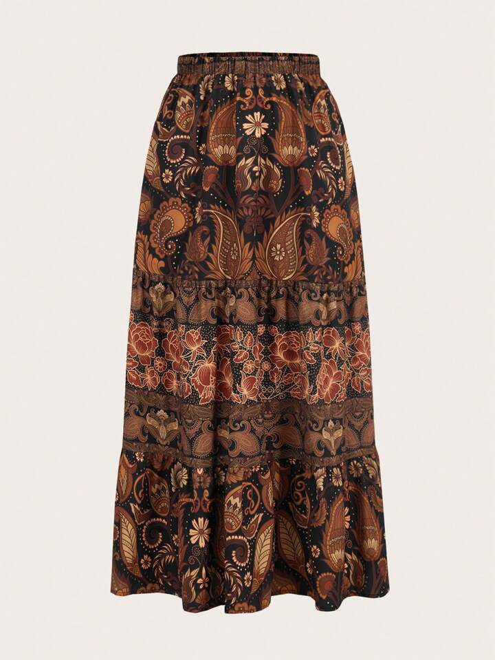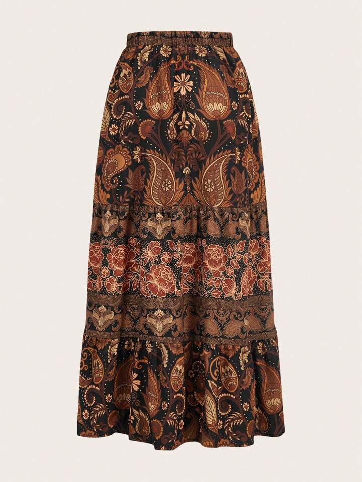 Delively Dewi Jupe longue taille élastique à imprimé paisley vintage