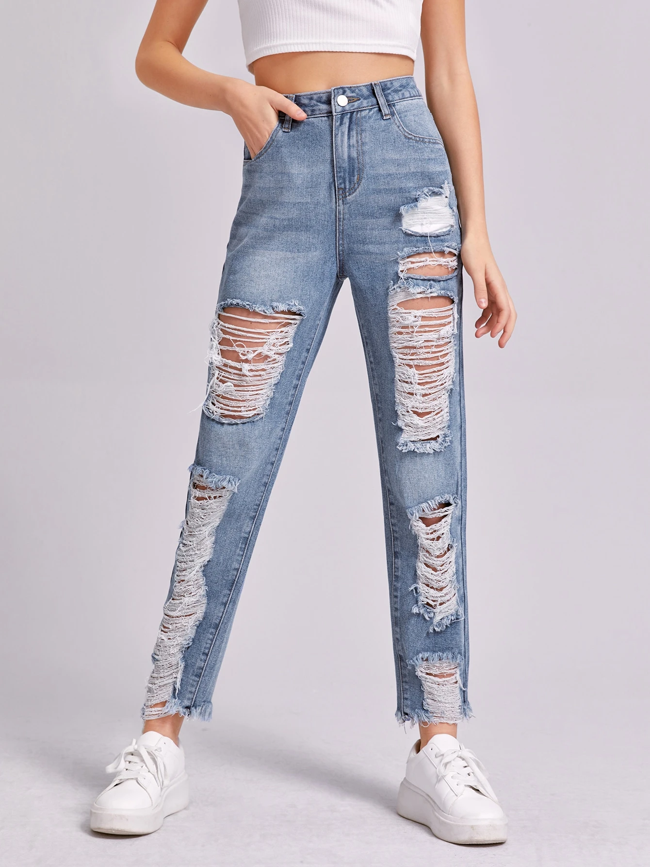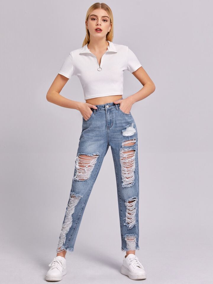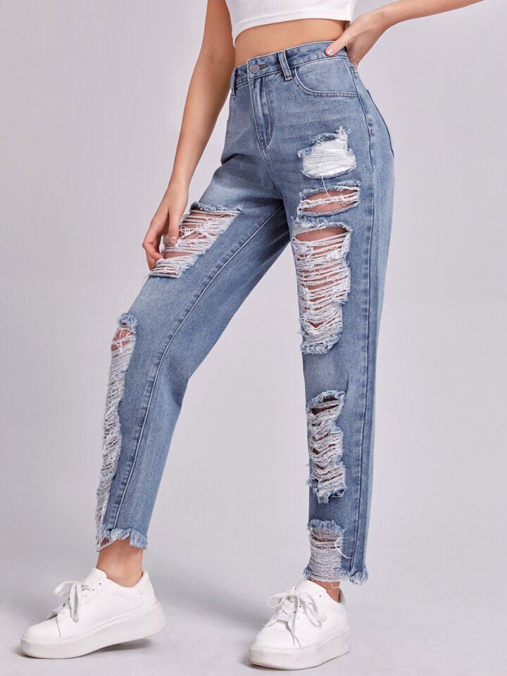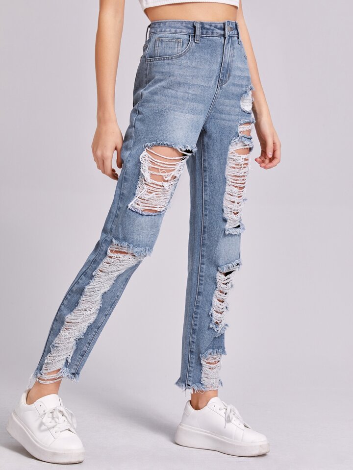 Jean déchiré avec ourlet effiloché