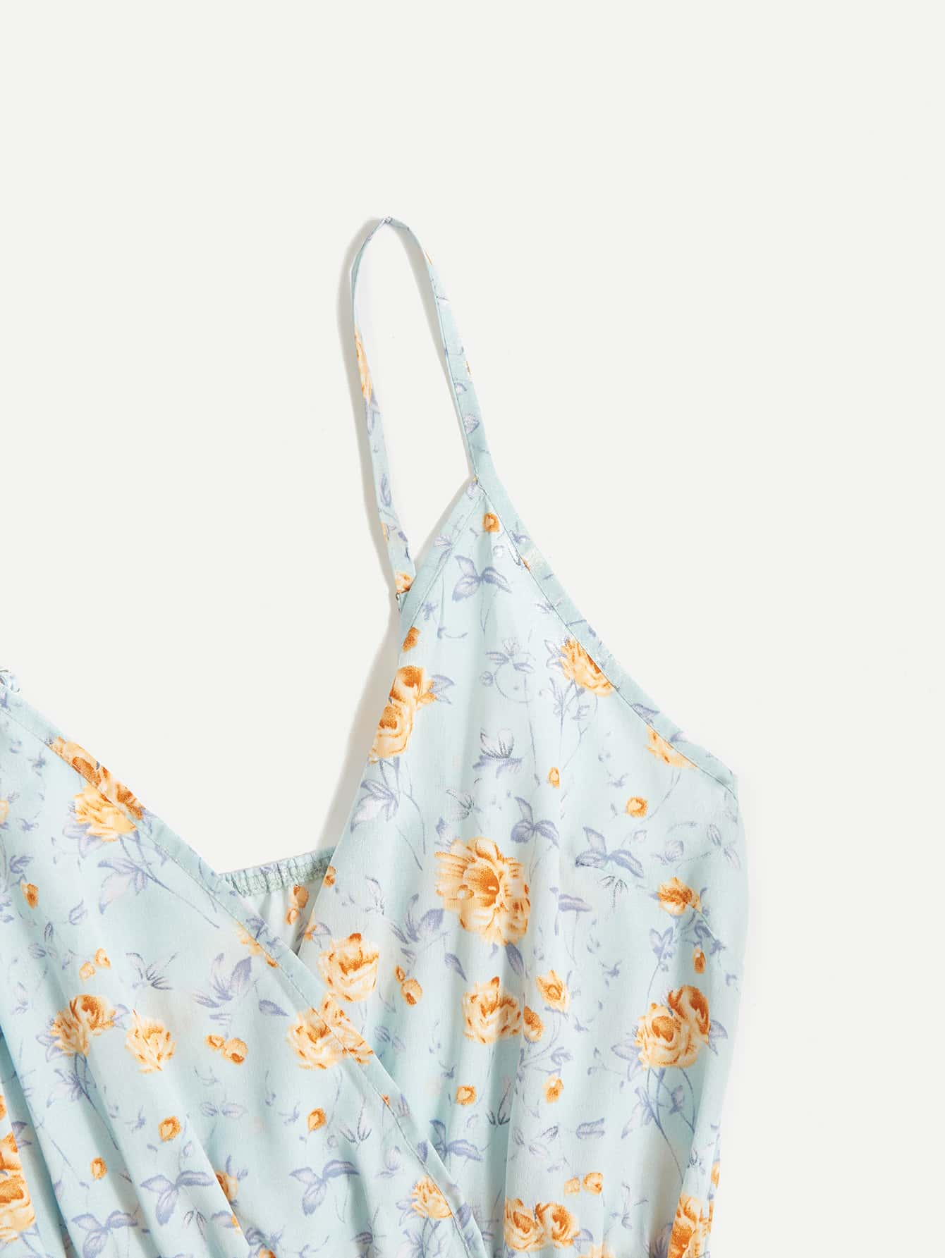 Combishort ceinturé à fines brides avec imprimé marguerite