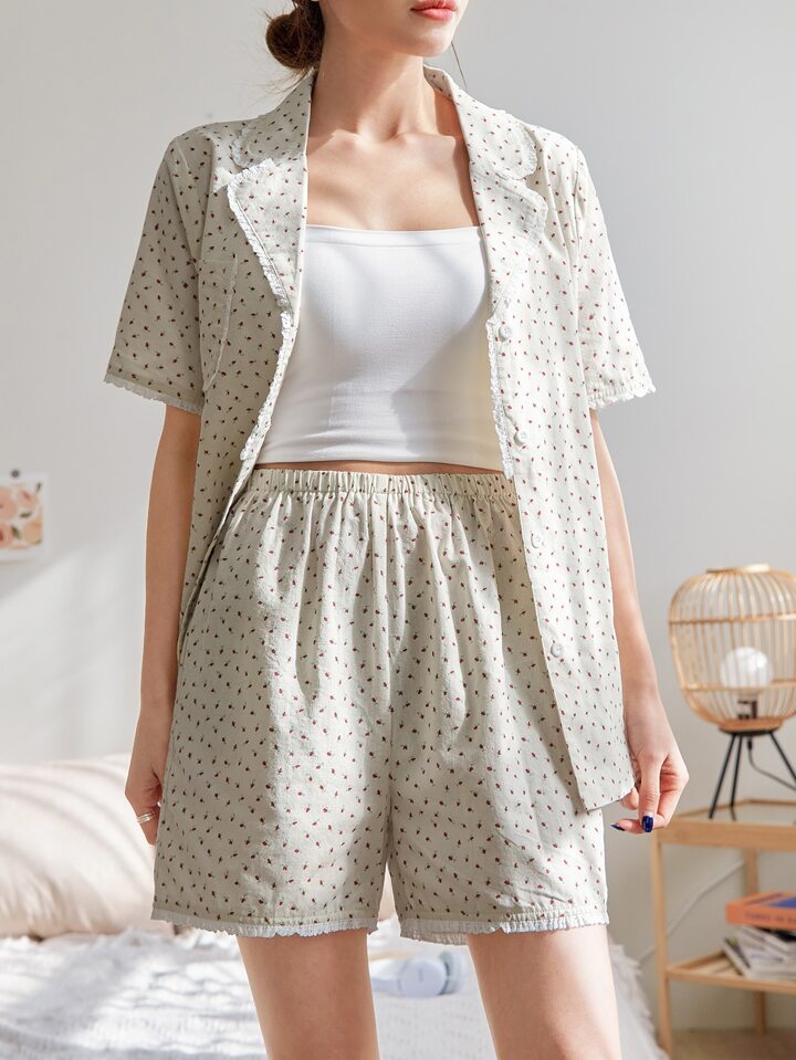 Ensemble de pyjama fleuri à plis