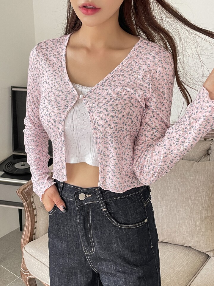 T-shirt court à manches longues avec imprimé floral ditsy pour femmes
