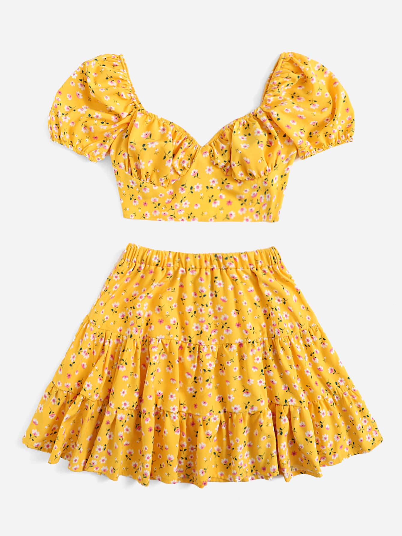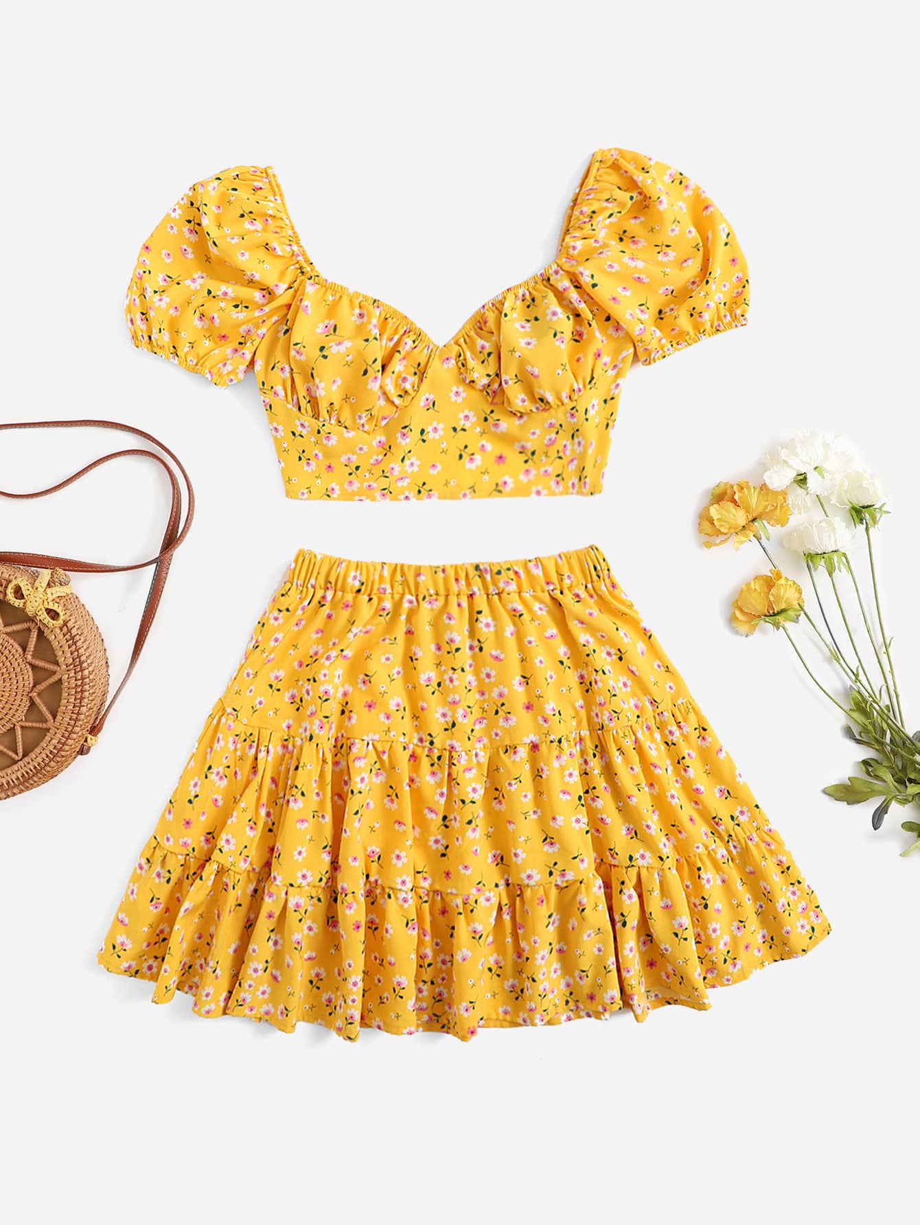 Top fleuri à nœud & Jupe à volants