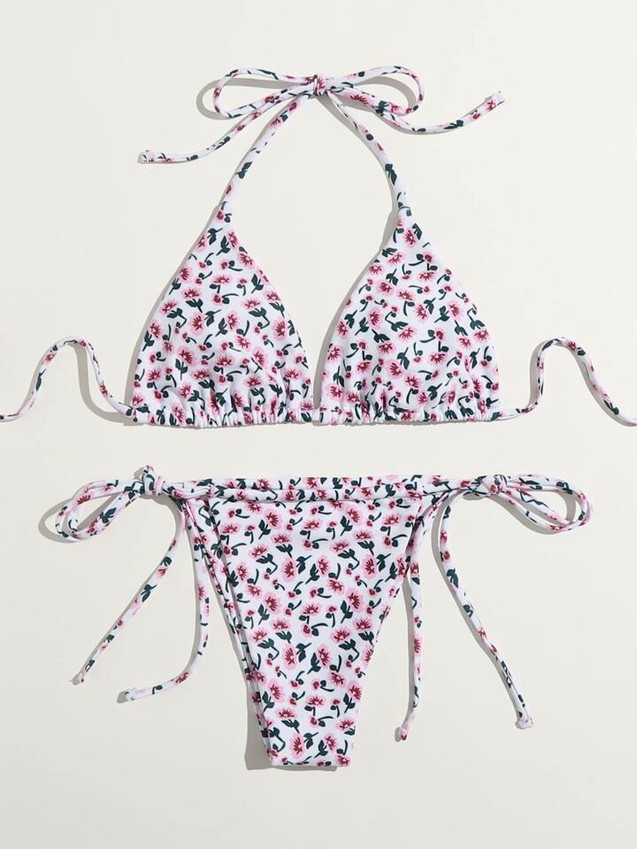 Ensemble bikini à nouer sur le côté avec motif floral pour l'été à la plage