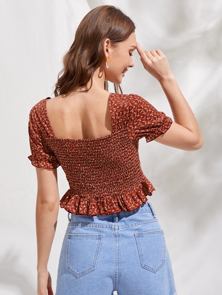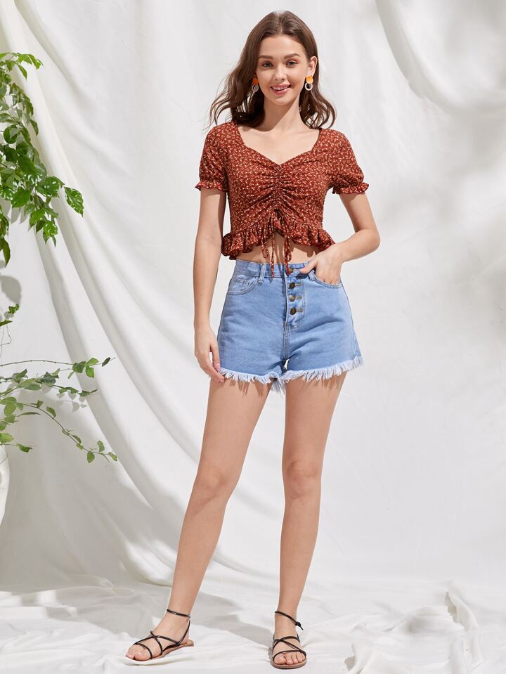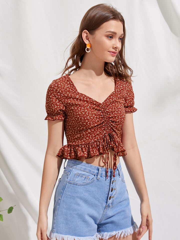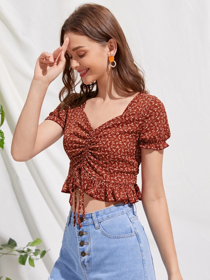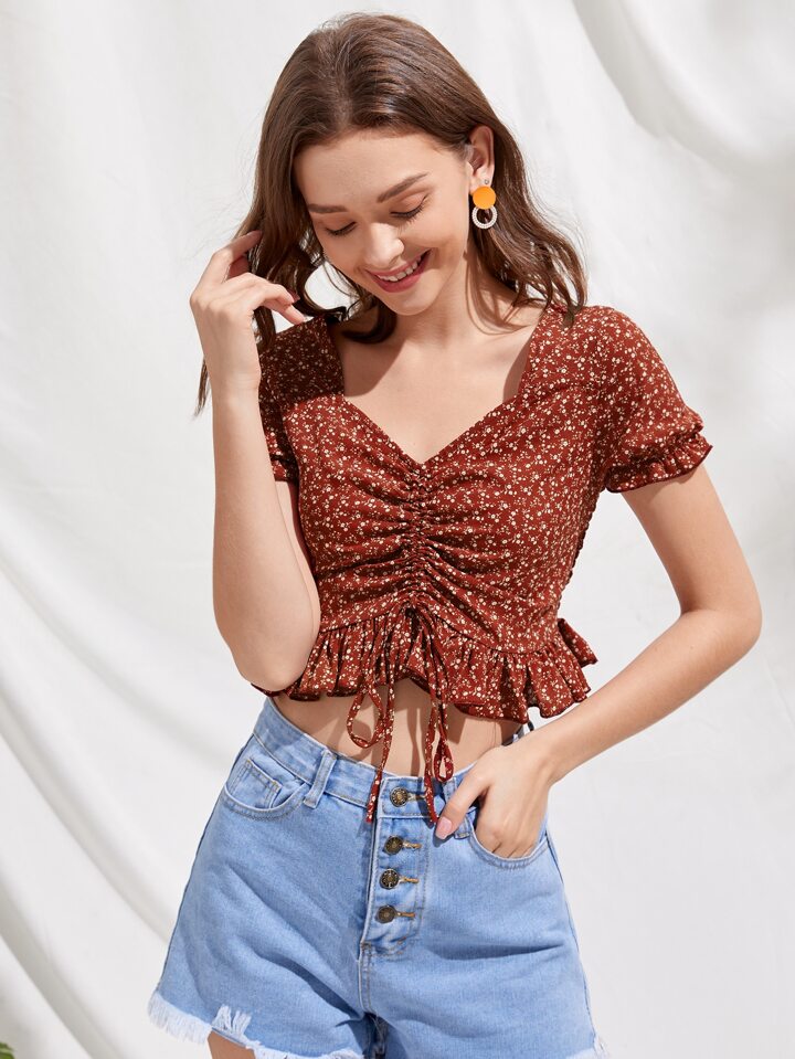 Top court avec cordon et fleur