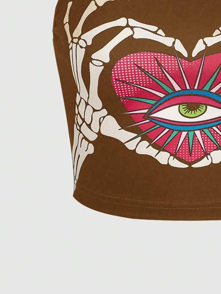 Doodleandpattern Top camisole pour femmes avec imprimé crâne aux yeux en forme de cœur gothique