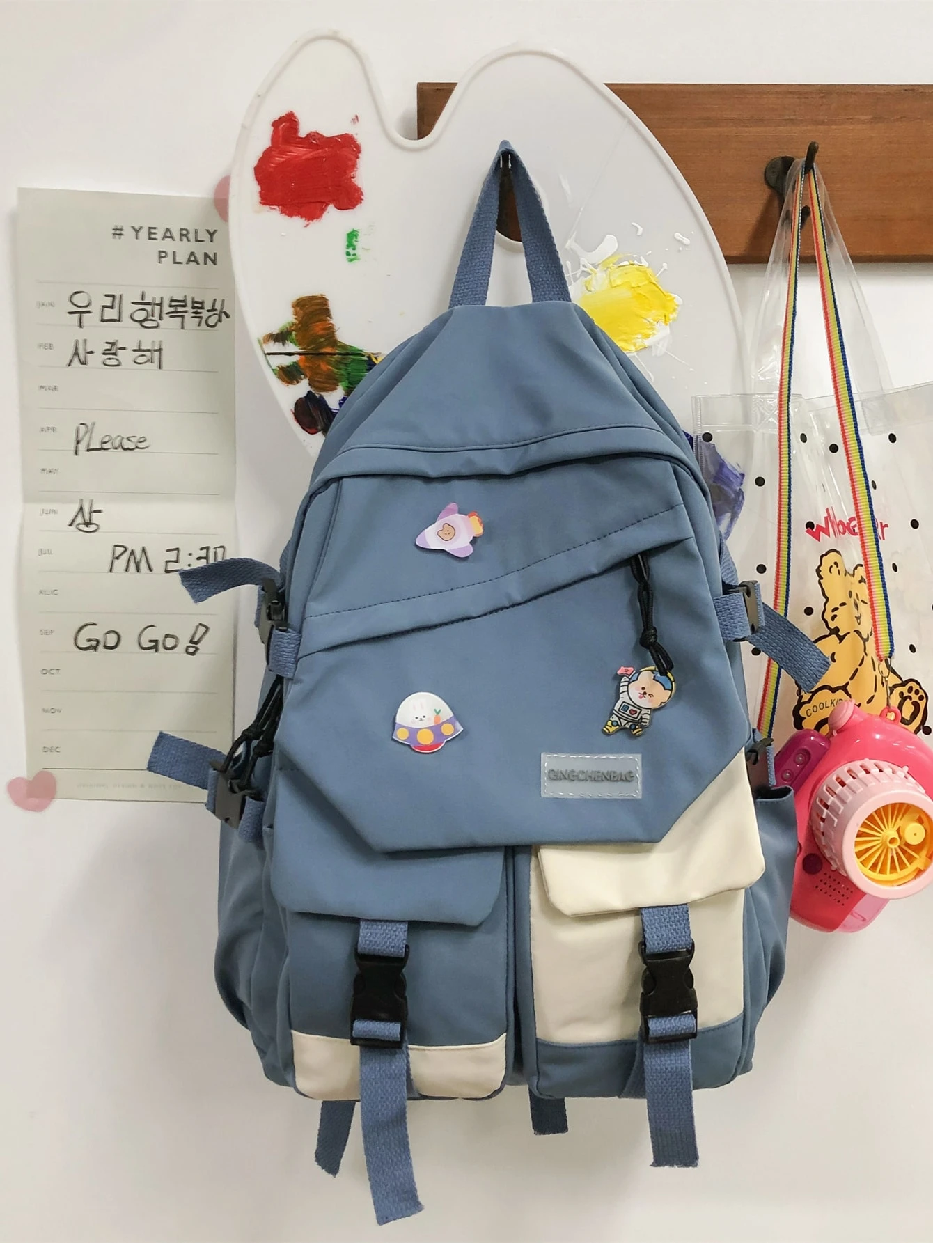 Sac à dos à boucle avec badge dessin animé