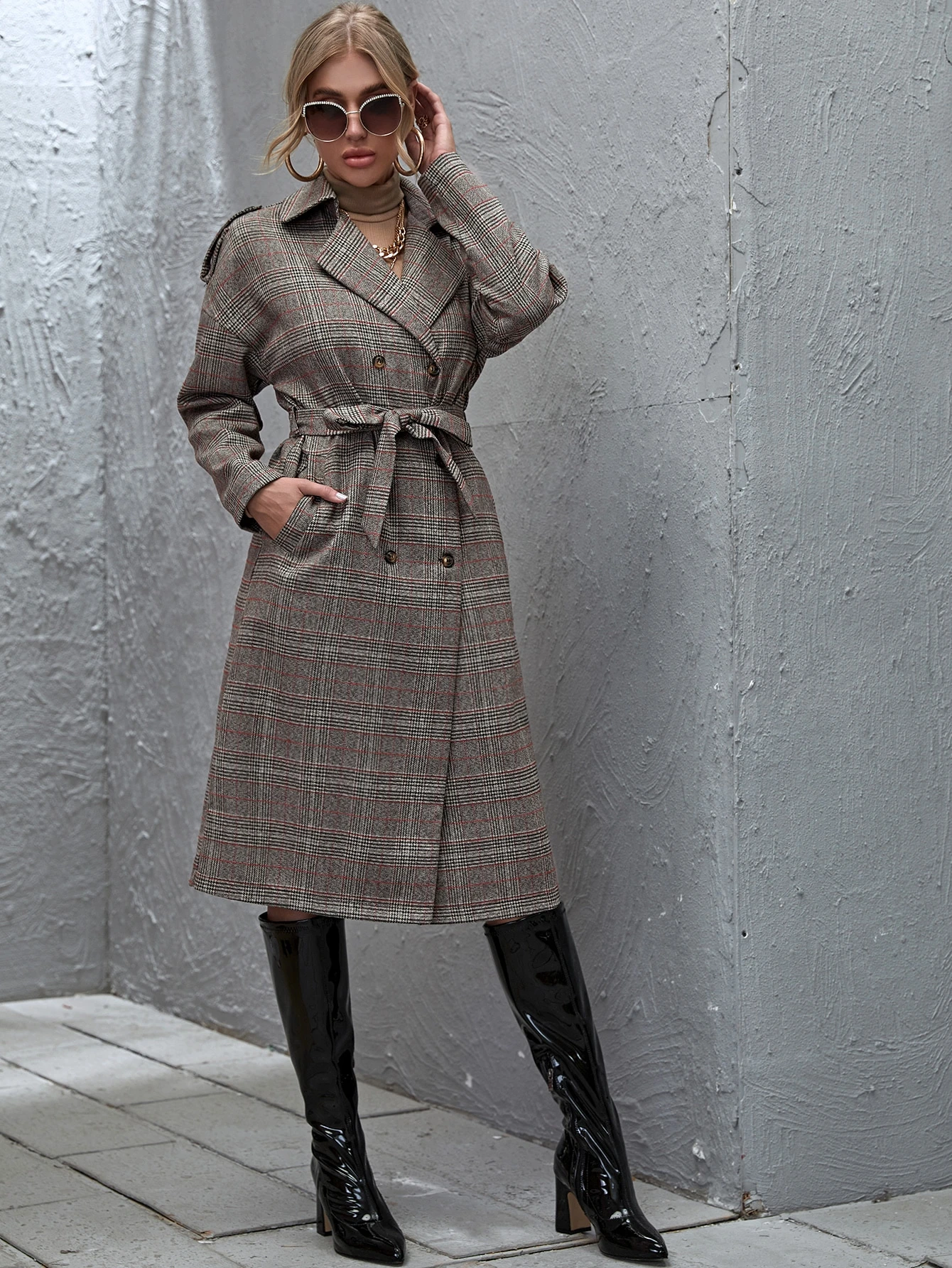 Manteau ceinturé à carreaux