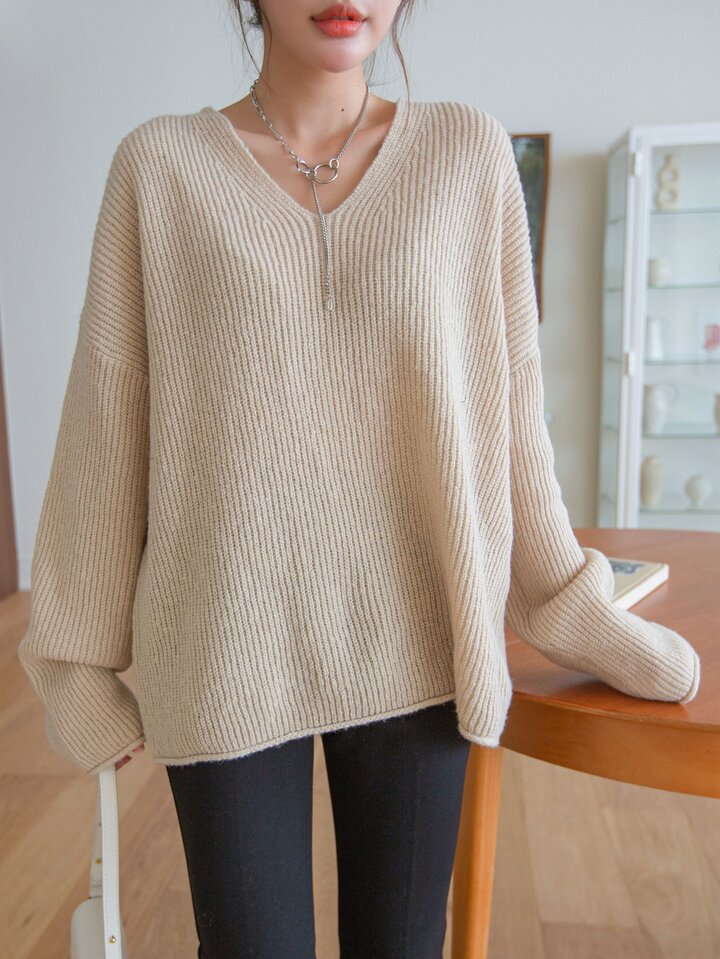 Pull tricoté côtelé à épaules tombantes, vêtements d'automne pour femmes