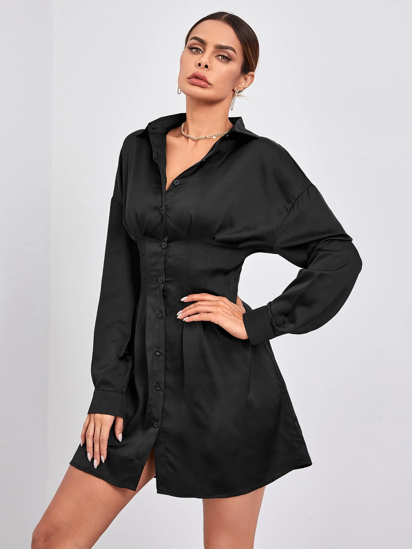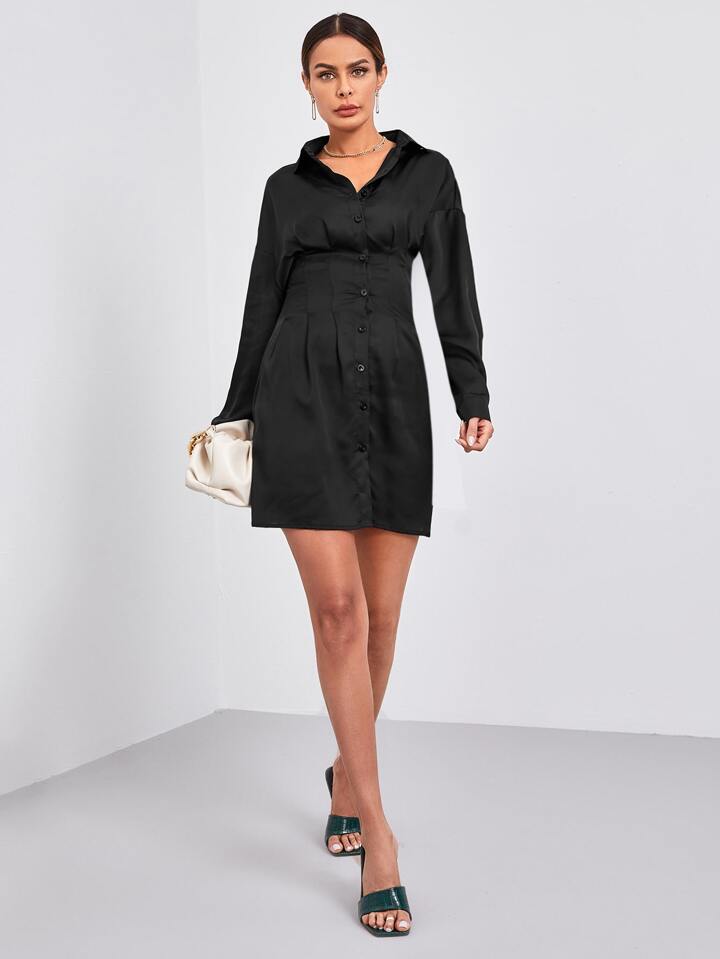 Robe chemise en satin avec boutons
