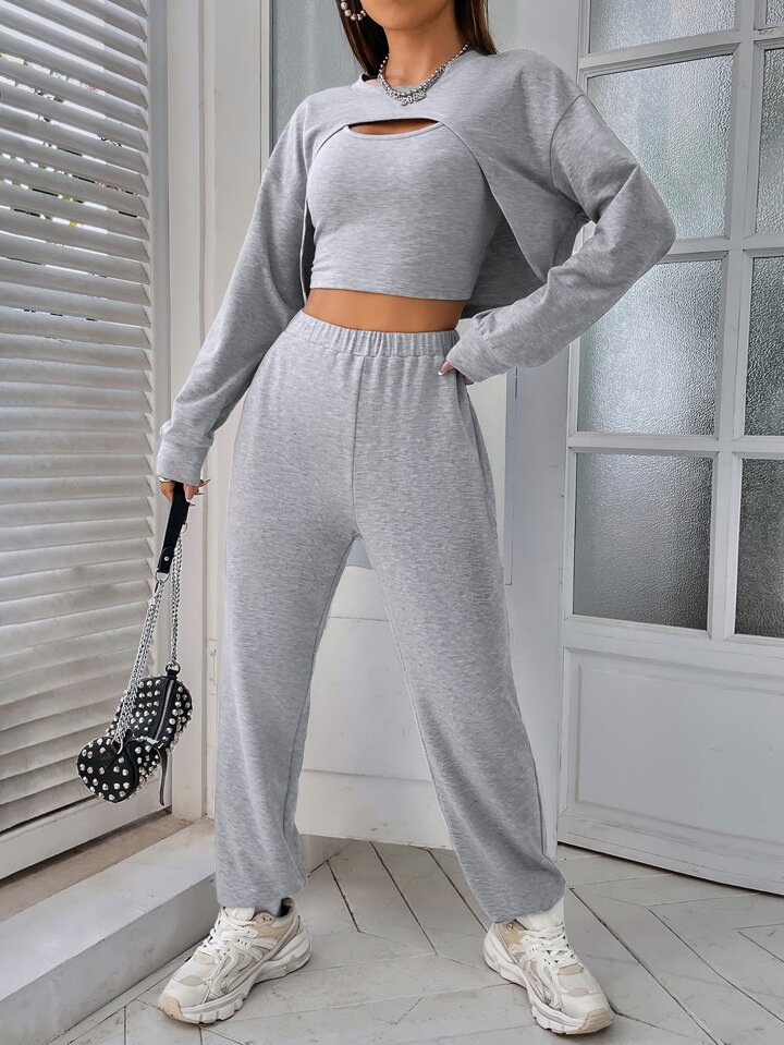 Pantalon de survêtement & Sweat-shirt très court & Top sans manches
